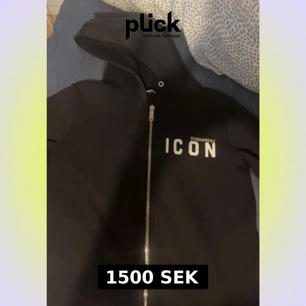 Svart hoodie från Dsquared2 i storlek S med stor vit ICON-print på bröstet. Tröjan har huva, hel dragkedja med Dsquared2-logga och är tillverkad i 100% bomull. Perfekt för dig som gillar streetwear och vill sticka ut med en snygg designertröja.