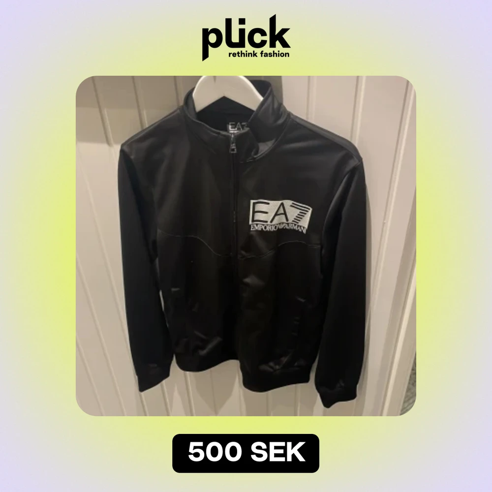 Svart Emporio Armani tröja med dragkedja från botten till toppen. Väldigt fin tröja utan några skador som hål eller fläckar. Tröjan är i storlek S-M och är i de tunnare materialet. Gammal modell av EA7 som är väldigt snygg. Köpt från johnells för ett par år sen.