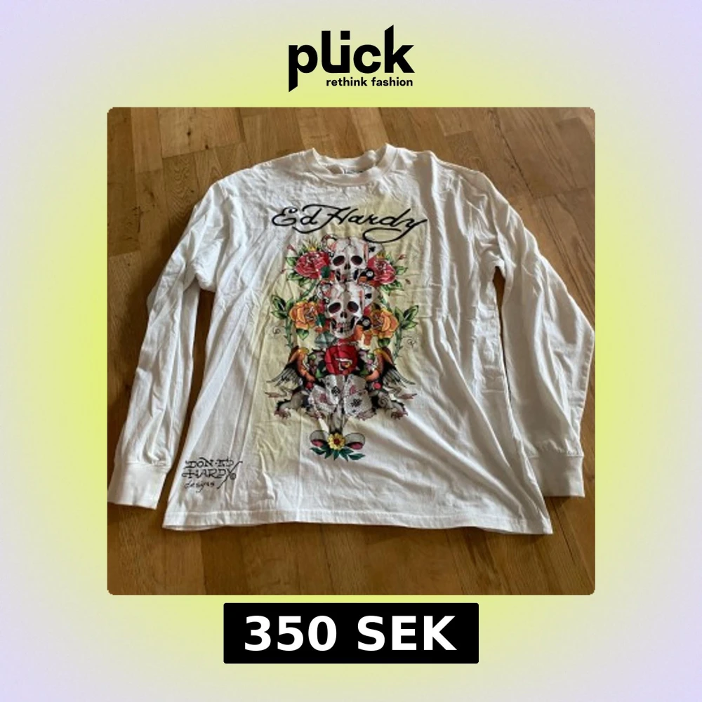Ed Hardy Black vit långärmad med stort färgglatt tryck av dödskallar, framsidan. Köpte för 500 säljer för 350!