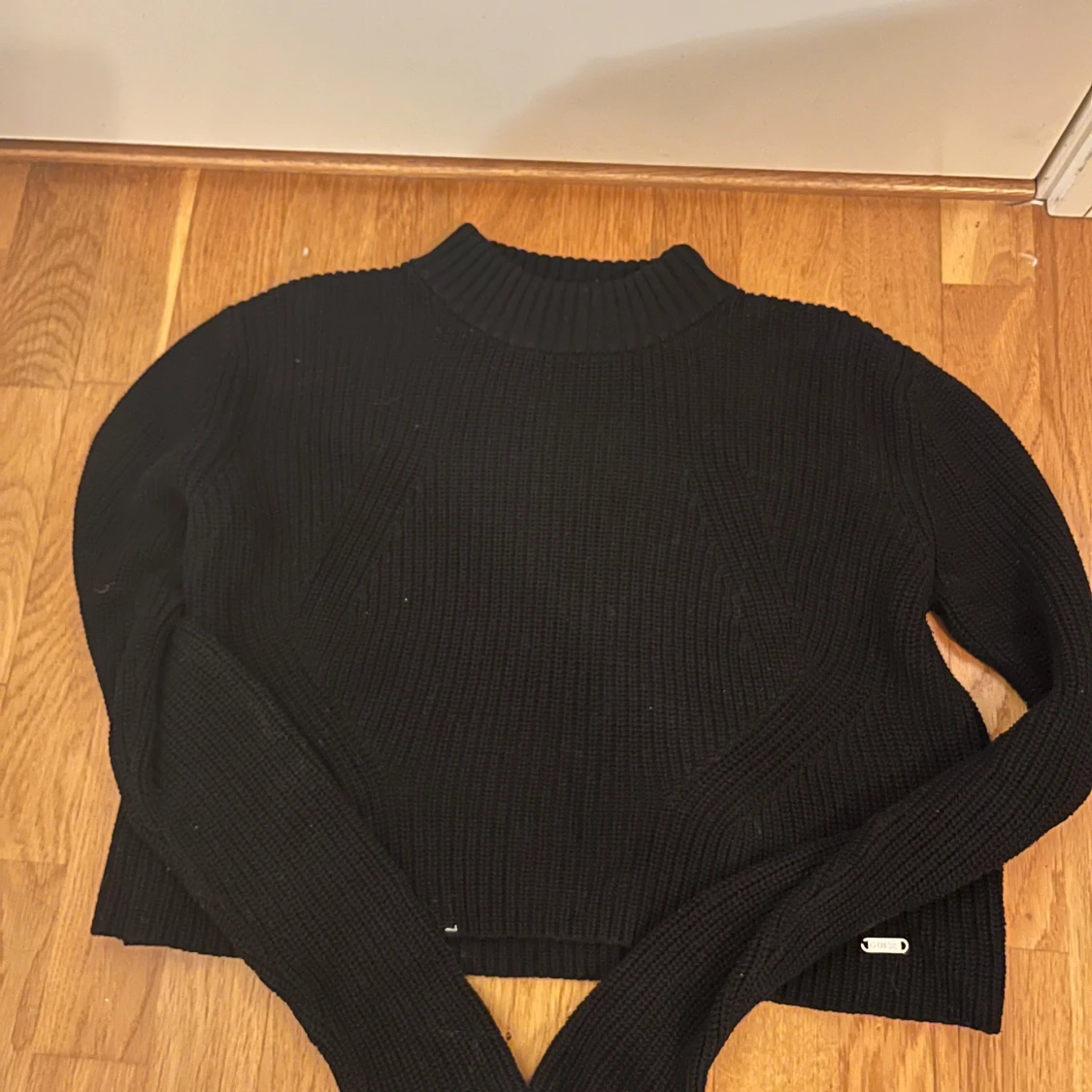 Svart stickad tröja från Guess, vet tyvärr inte storleken vi skulle gissa på XS 💕