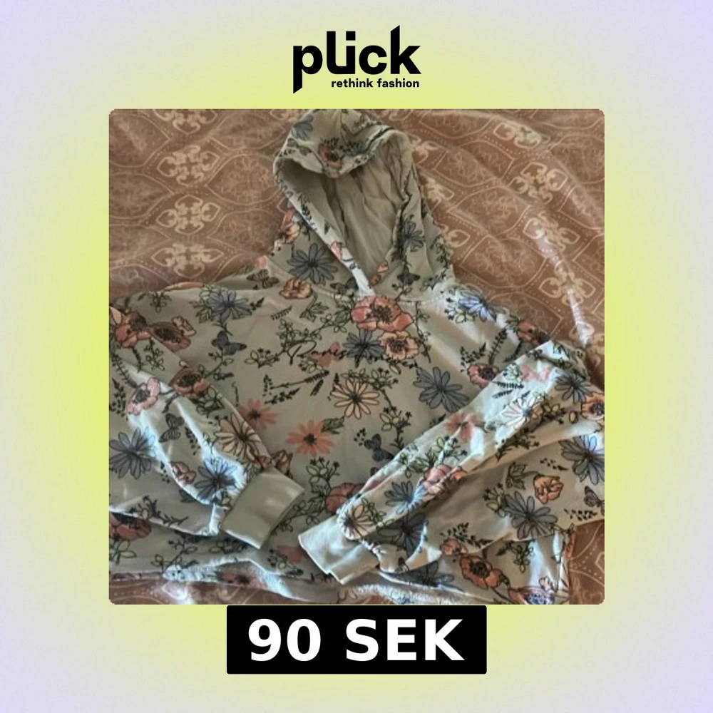 Superfin hoodie från Ellos med blommigt mönster i pastellfärger. Tröjan har huva, långa ärmar och ribbade muddar. Perfekt för dig som gillar en avslappnad och söt stil.
