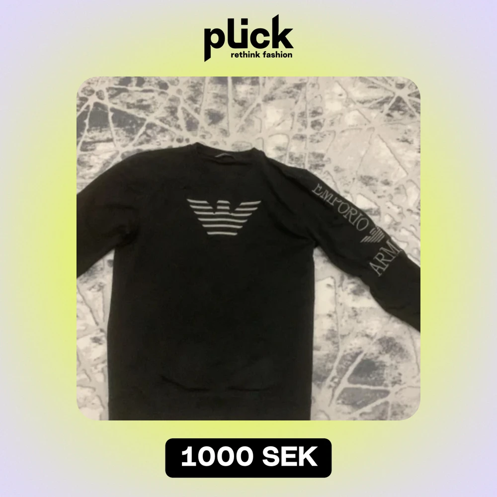 En Emporio Armani sweatshirt i mycket bra skick. Jag fick den som present och en ny kan vara mycket dyr. Det står L men passar som M. Vid intresse skriv och pris kan diskuteras