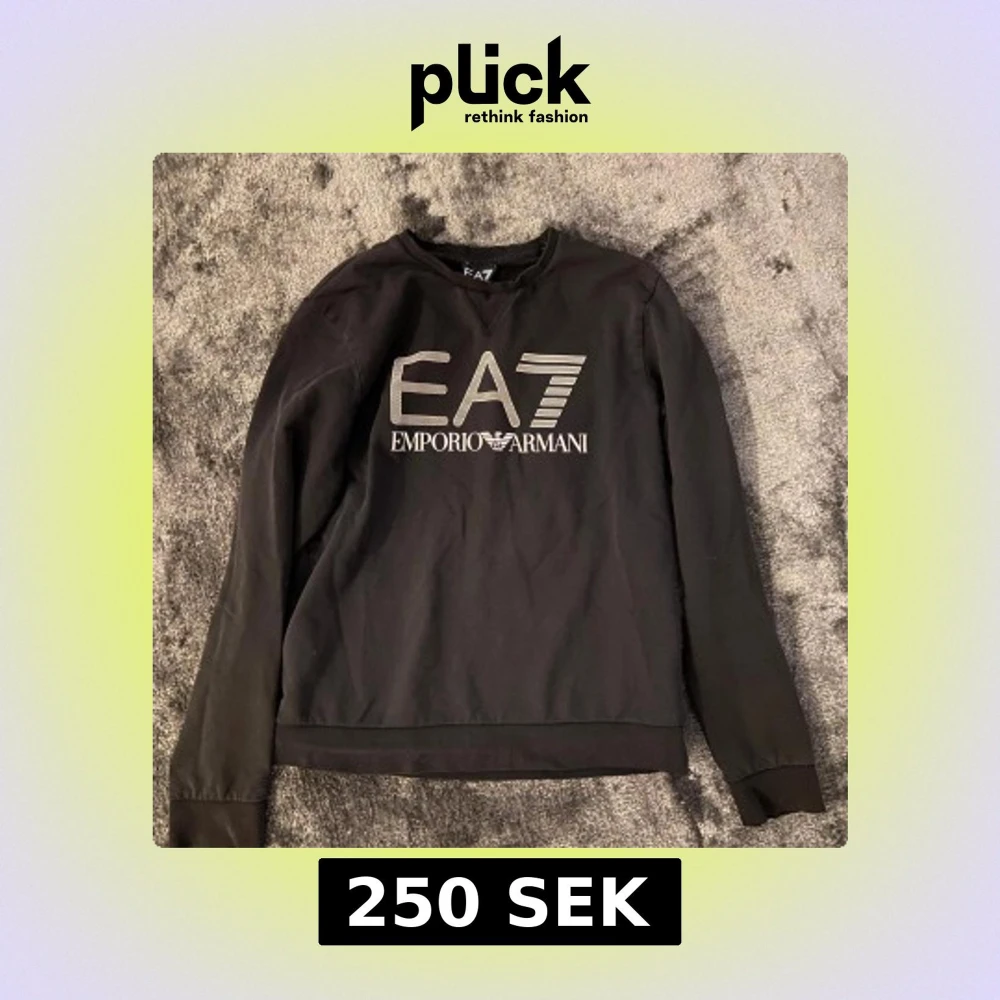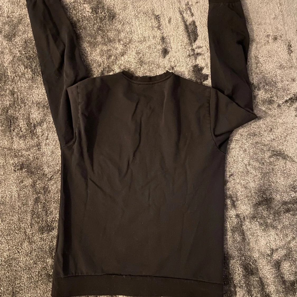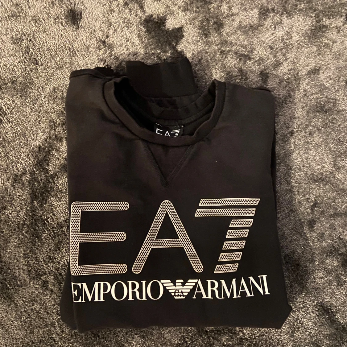Svart sweatshirt från EA7 Emporio Armani med stor logga framtill i vitt och grått. Tröjan har rund halsringning, långa ärmar och ribbade muddar. Perfekt för dig som gillar stilrena och exklusiva plagg med streetkänsla.
