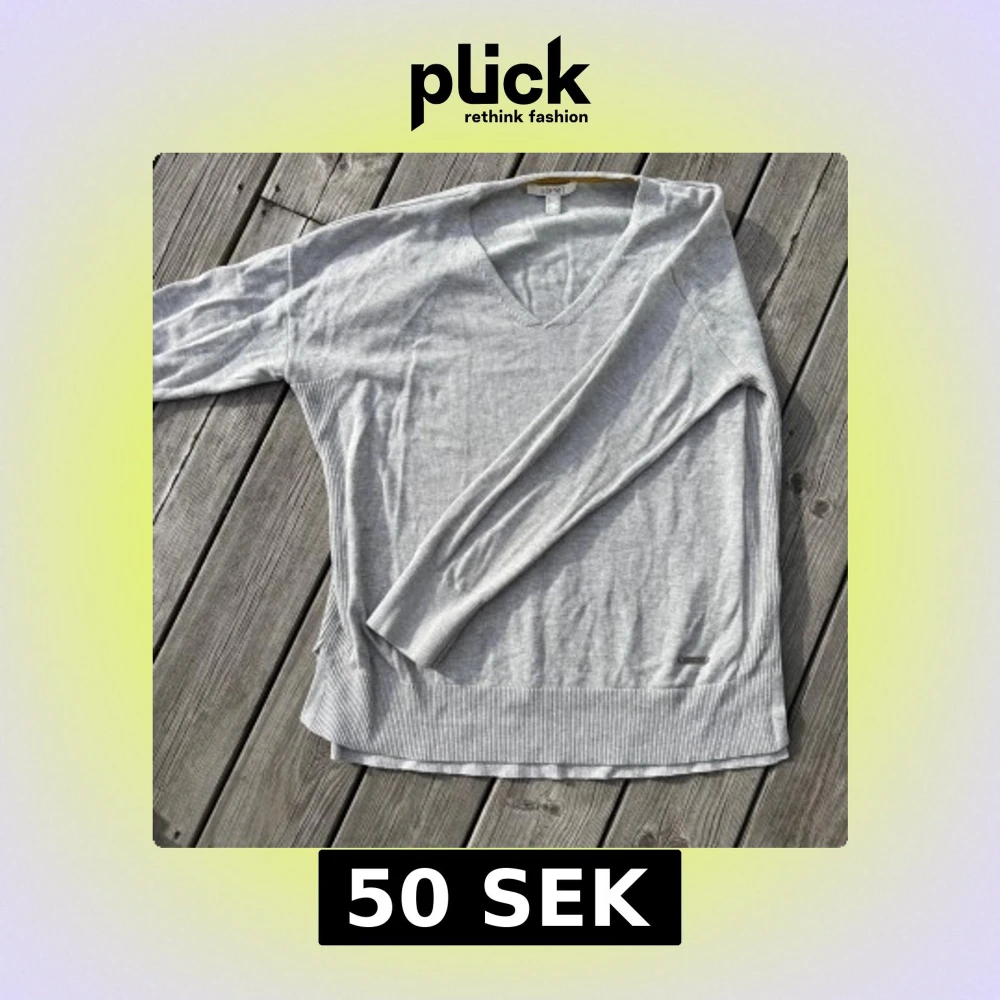 Ljusgrå v-ringad tröja från Esprit i mjuk stickad bomullsblandning. Tröjan har långa ärmar, ribbade muddar och nederkant samt en diskret metallogo vid höften. Perfekt för lager-på-lager och chill stil.