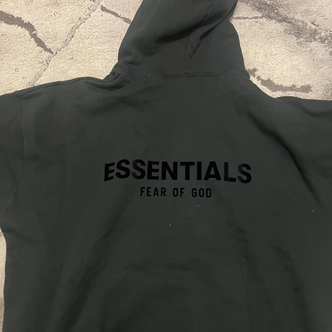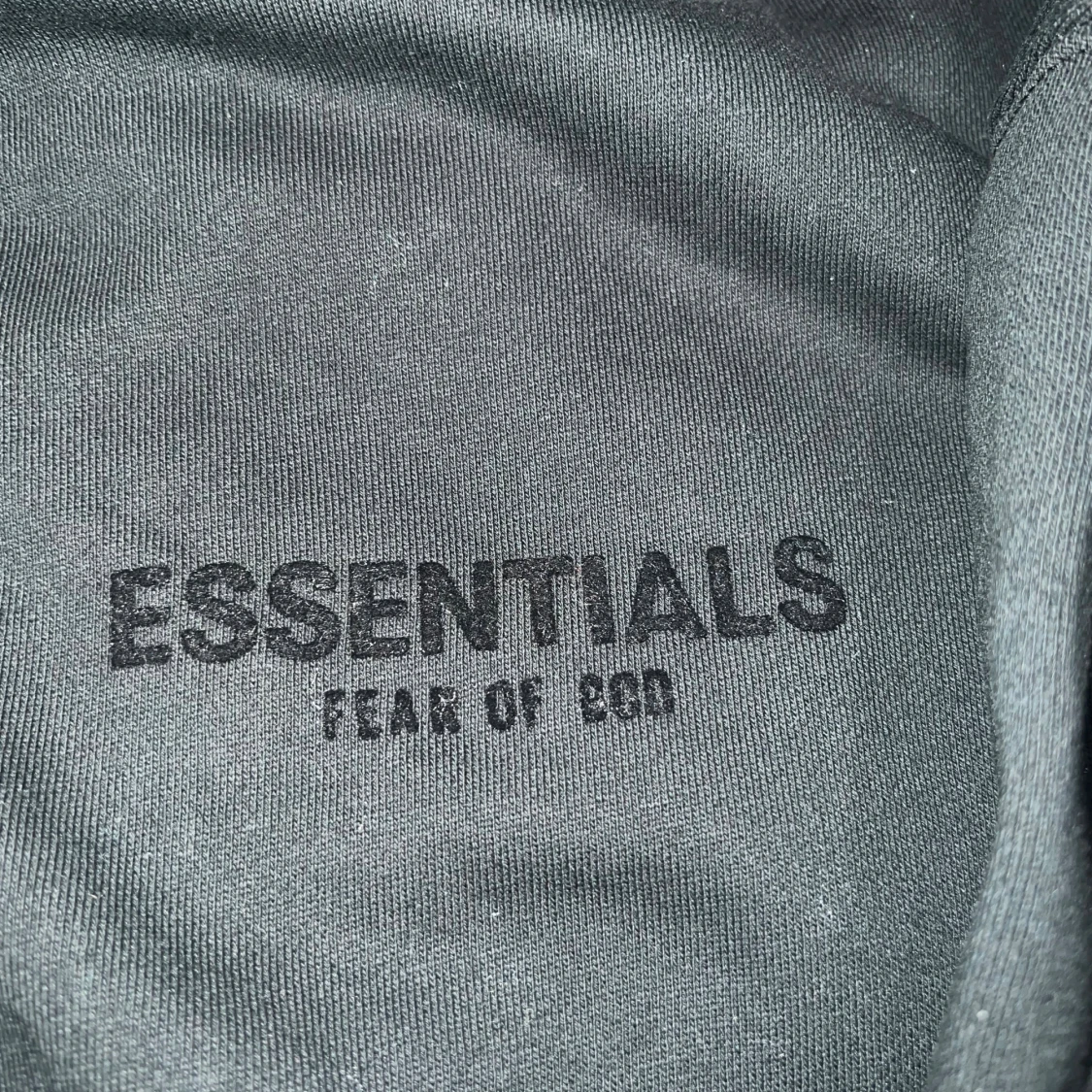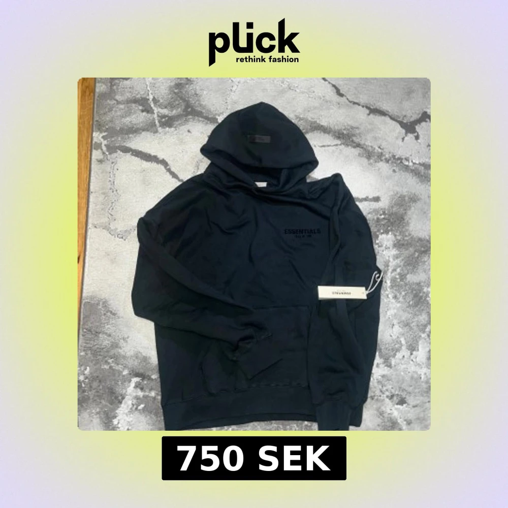 Svart Essentials Fear of God hoodie i streetwear-stil. Oversized passform med tryck fram och bak. Passar M, L och XL – lite beroende på hur du vill att den sitter.