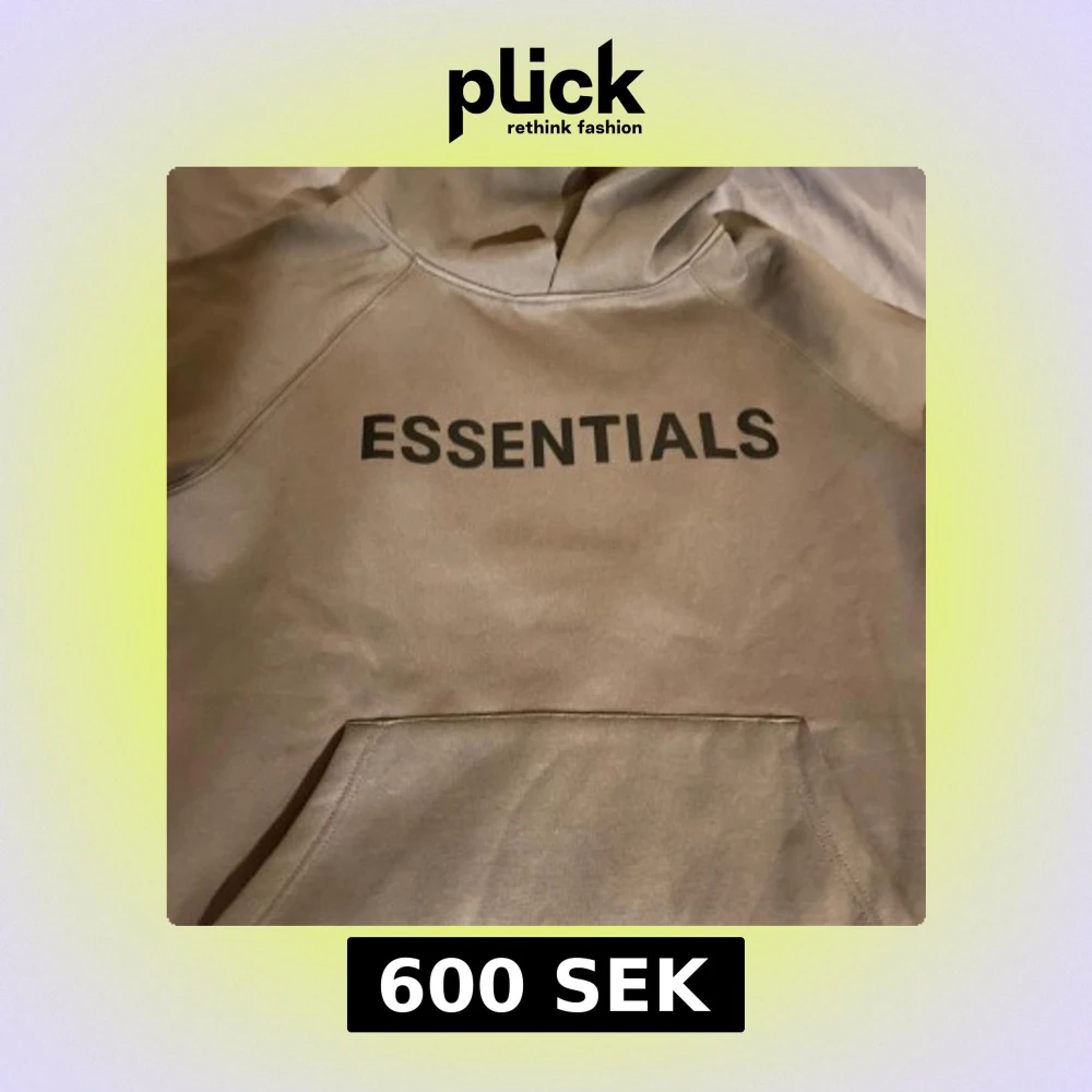 Säljer en snygg beige hoodie från Essentials. Storlek L. Knappt använd.