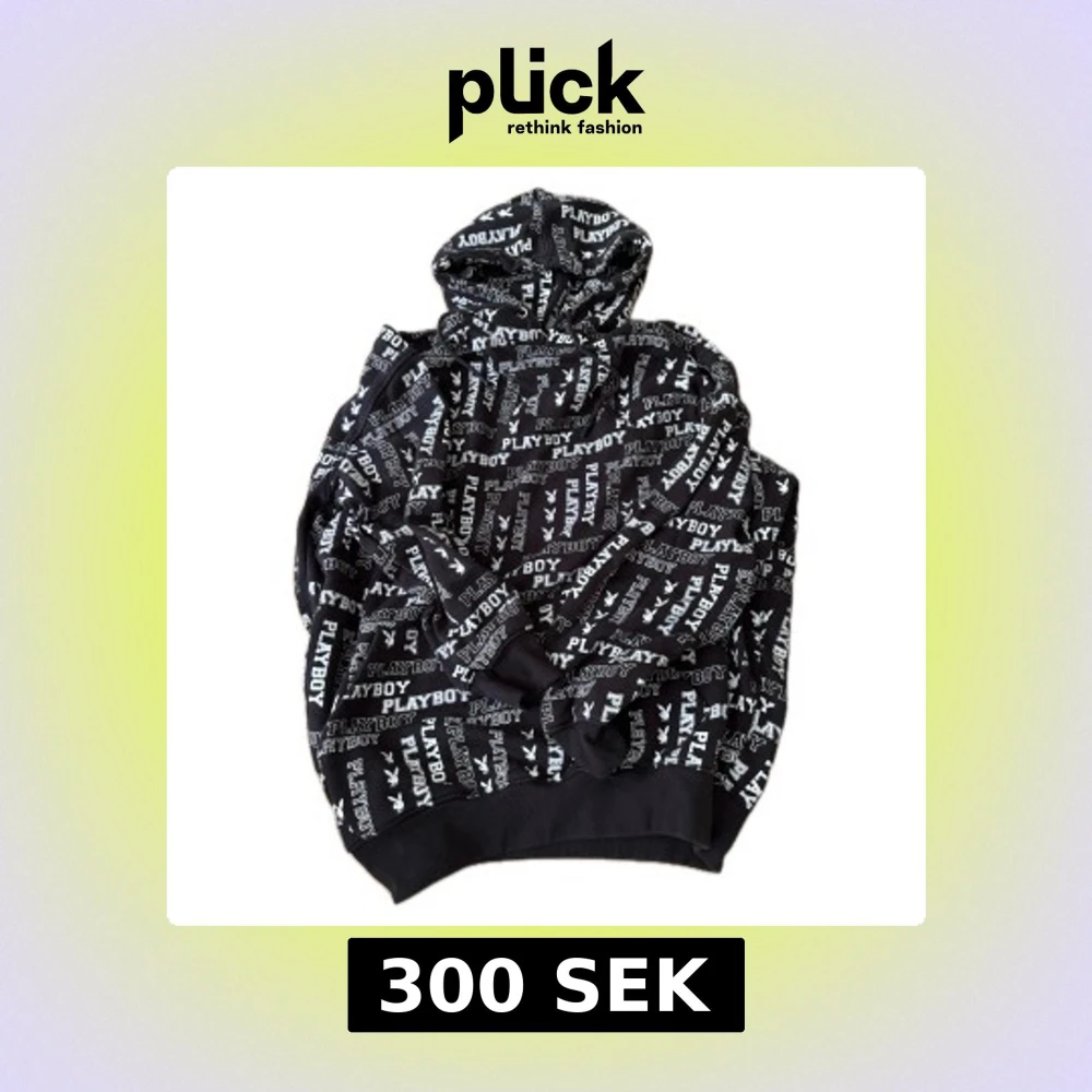 Svart hoodie från Playboy x Missguided med vit logotyptext och kanintryck över hela tröjan. Oversized passform, mjuk insida och stor huva.