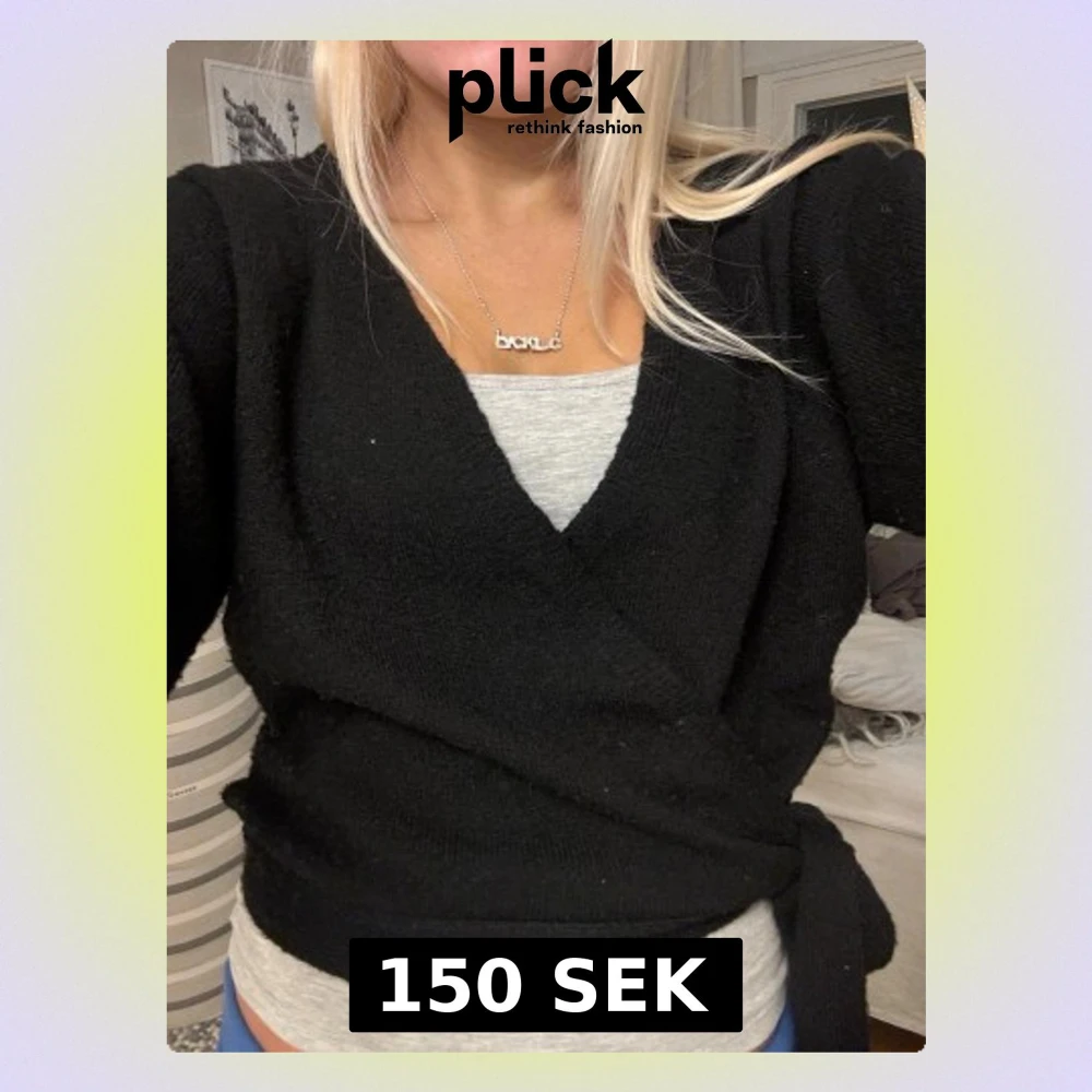 Svart knyt kofta från zalando, even&odd. Står ingen storlek på lappen men skulle säga att den passar xs,s,m eftersom den går att knyta tajtare eller lösare.