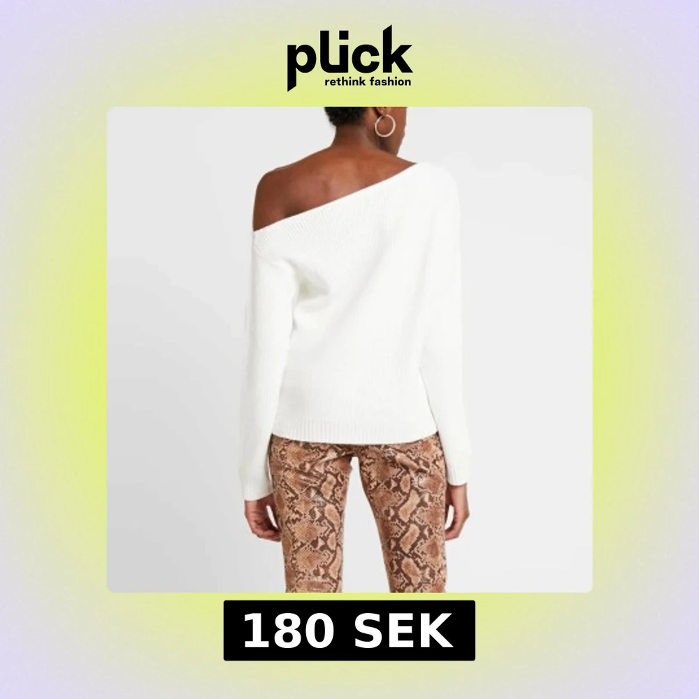 Snygg vit stickad tröja med offshoulder-design och lång ärm. Tröjan har en ribbad struktur som ger en modern känsla och passar perfekt till både jeans och kjol. Enkel men trendig modell som lyfter din outfit.