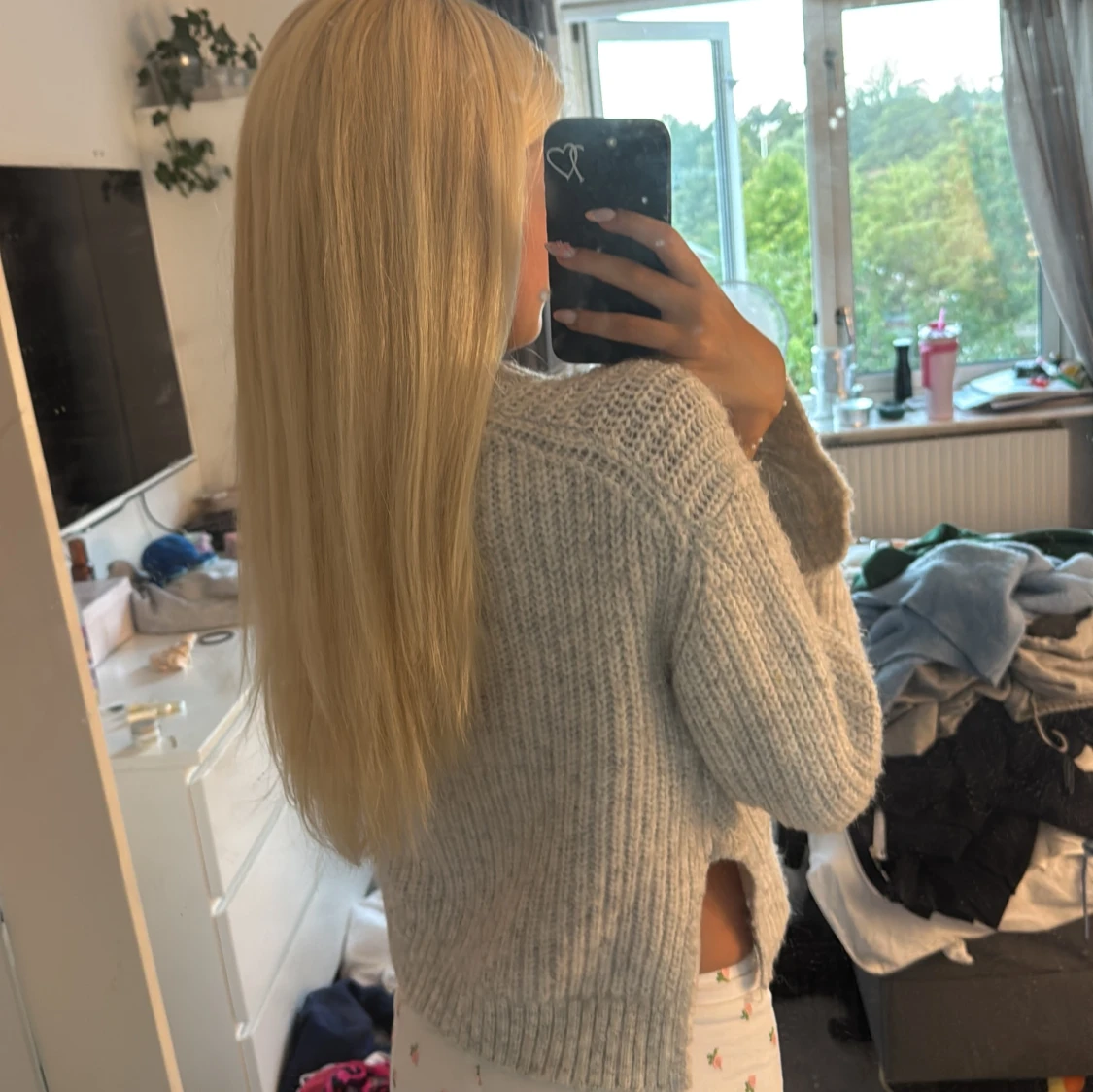 Supermysig ljusgrå stickad tröja med breda ärmar och slits på sidorna. Tröjan har en grovstickad struktur och en rund halsringning. Perfekt för lager-på-lager och chill dagar. 💘