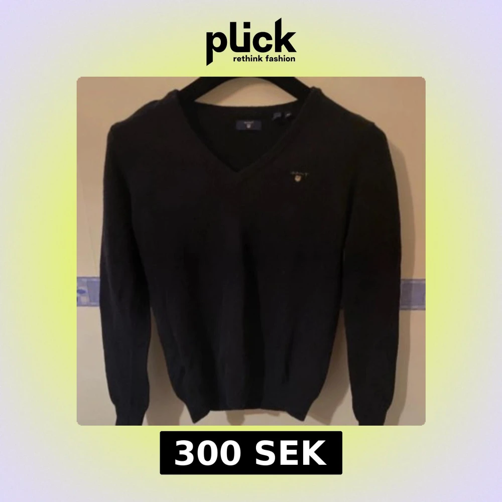 Säljer en stilren svart tröja från Gant med v-ringning. Tröjan är tillverkad i ull och polyamid, vilket gör den både varm och hållbar. Perfekt för kyligare dagar.