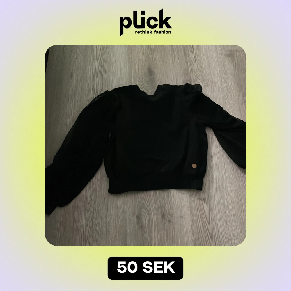 Säljer en svart tröja med coola detaljer. Den har långa ärmar och en liten metallbricka med ett smiley-ansikte. Perfekt för en stilren och avslappnad look. Passar till både vardag och fest!