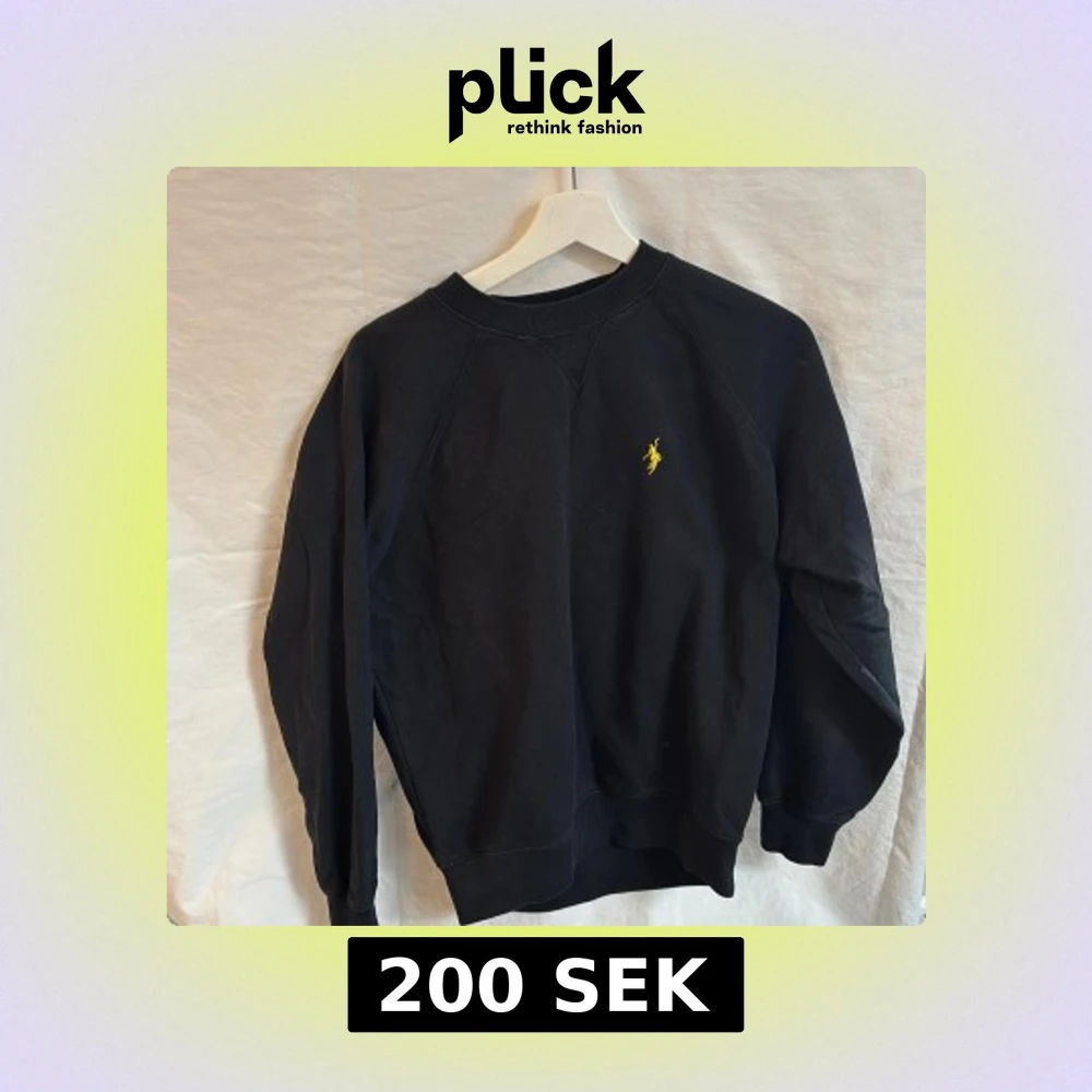 Svart sweatshirt från Polar med en gul broderad logga på bröstet.