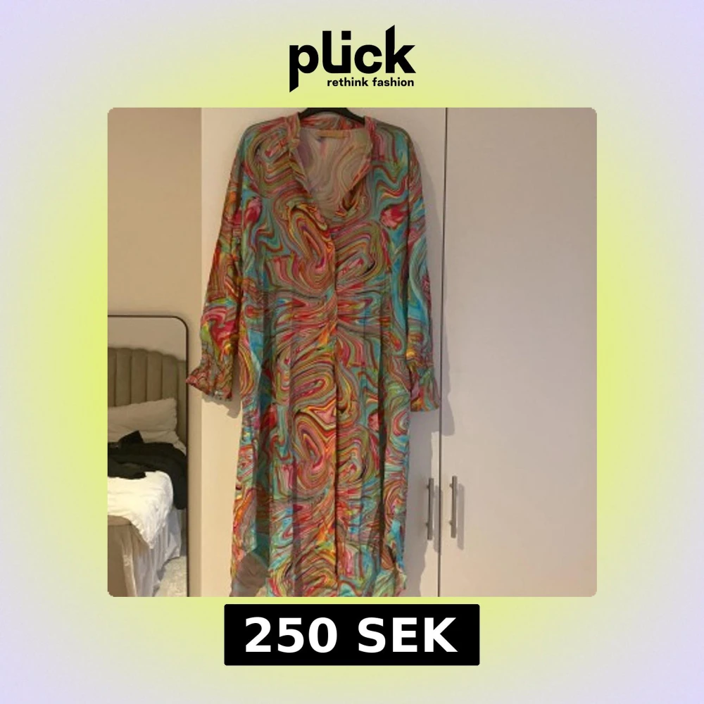 Säljer en färgglad kimono med ett psykedeliskt mönster i rosa, blått, gult och grönt. Kimonon har långa ärmar och knappar hela vägen. Perfekt för att sticka ut med sin unika stil!