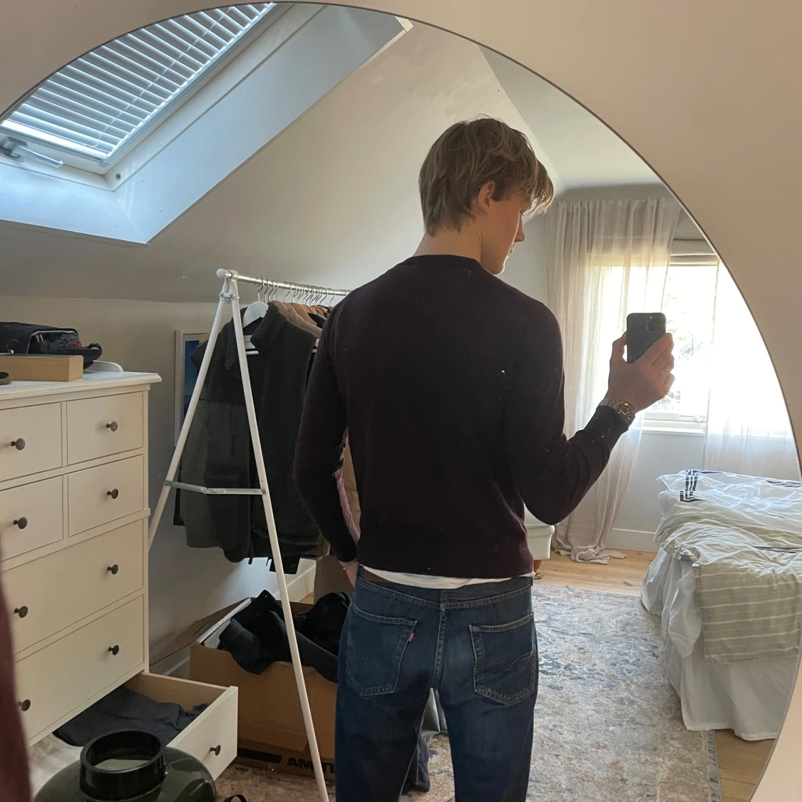 Riktigt snygg tröja, säljer pågrund av att den är för liten. Egentligen storlek M men tvättade fel så den krymptes och är nu i storlek S. Jag är 182 cm.