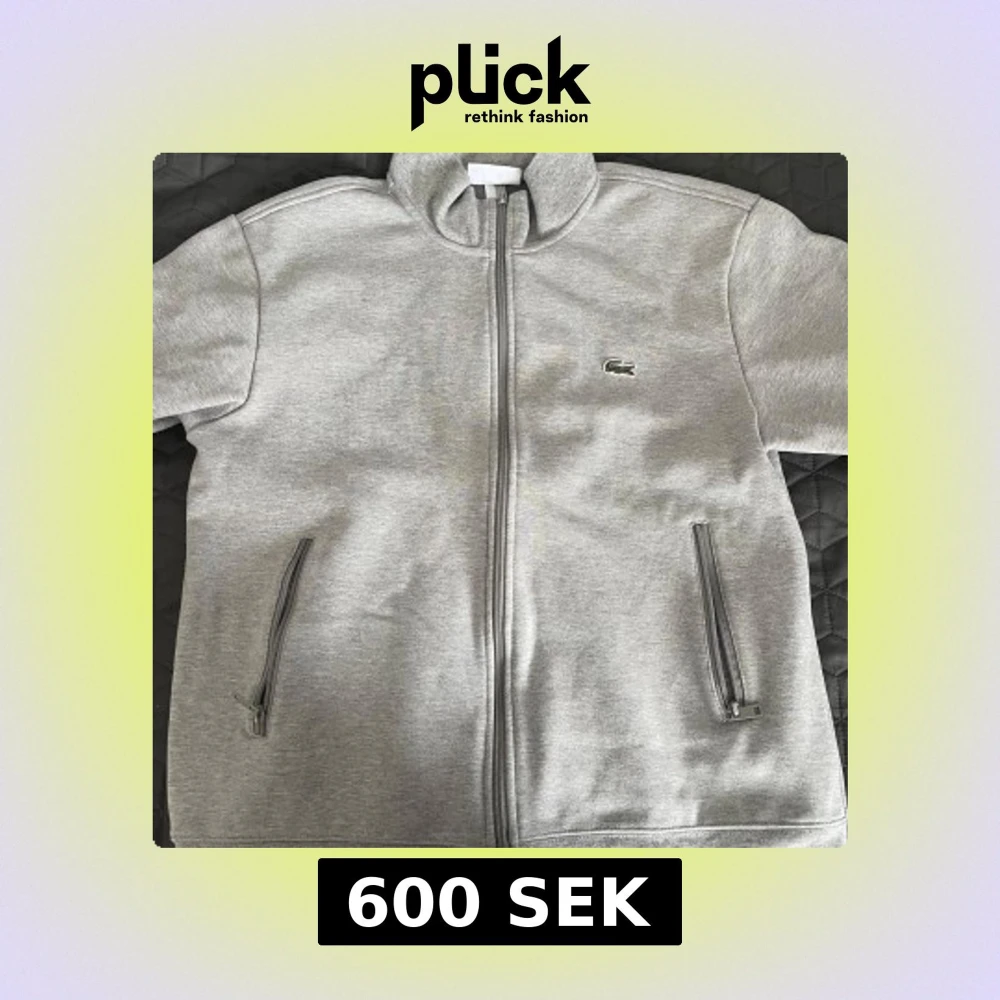 Säljer en stilren grå tröja från Lacoste med dragkedja och det klassiska krokodilmärket på bröstet. Jackan har långa ärmar och praktiska fickor med dragkedjor. Perfekt för en casual look.