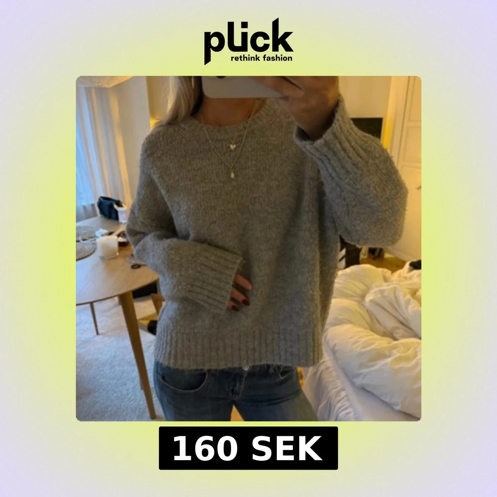 Mysig grå stickad tröja från zara med rund hals och breda ribbade muddar vid ärmslut och nederkant. Modellen är loose fit och har långa ärmar, perfekt att slänga på sig när det är kyligt ute. Passar lika bra till jeans som till kjol.