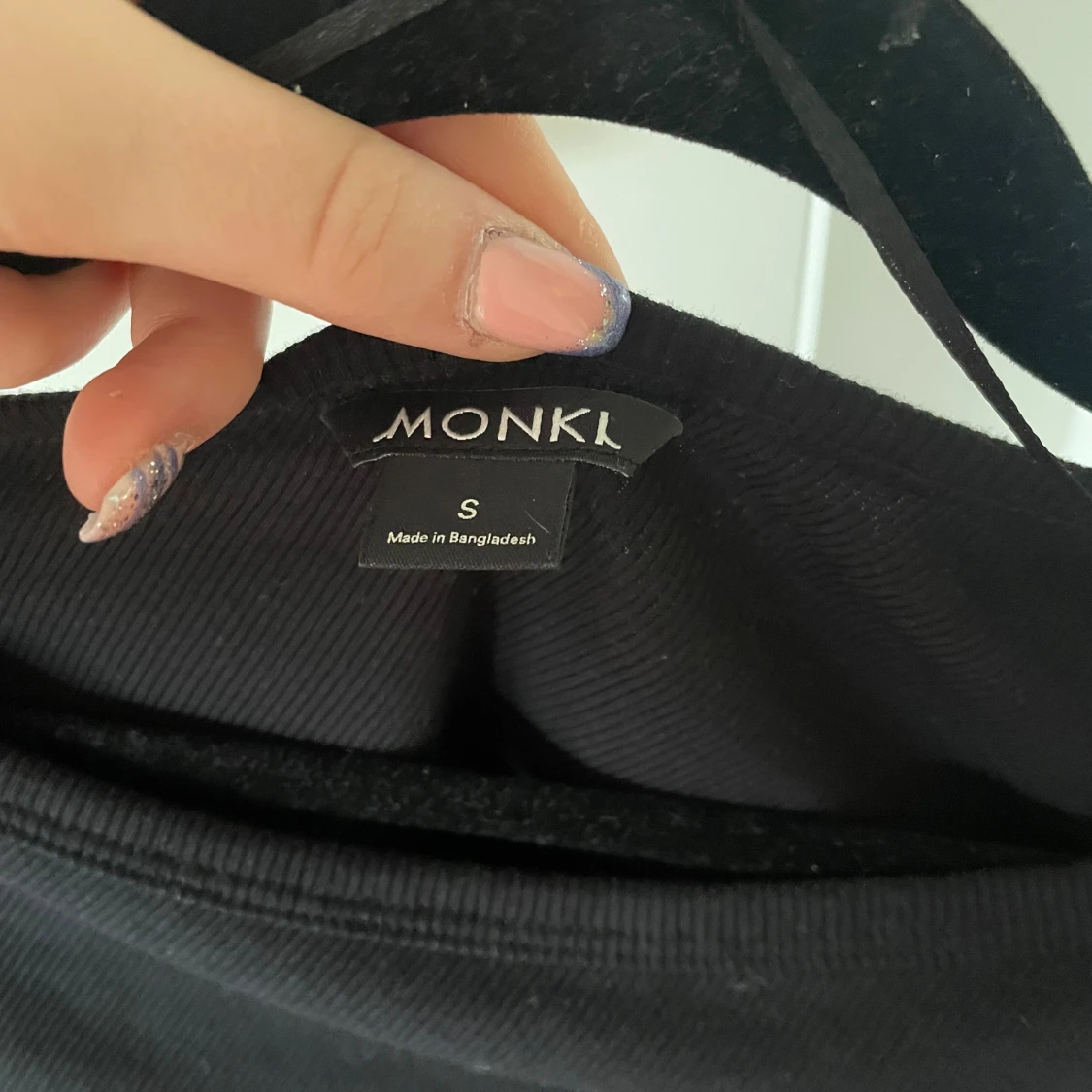 Säljer en stilren svart ribbad topp från Monki. Toppen har långa ärmar och en rund halsringning, perfekt för en enkel och snygg look. Passar bra till både jeans och kjol. 🖤