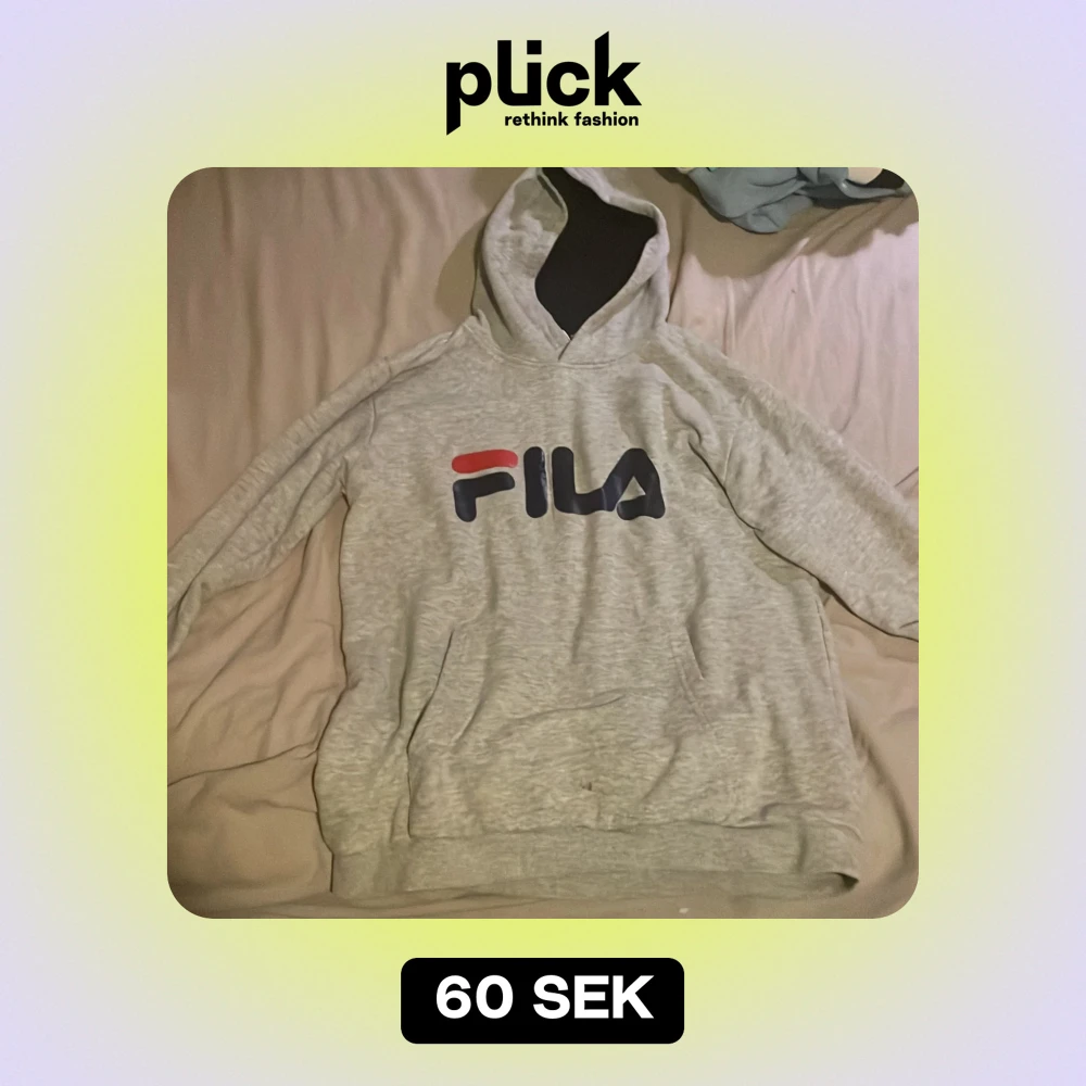 Säljer en snygg och bekväm grå hoodie från FILA. Perfekt för både vardag och chill. Den har en klassisk design med FILA-loggan i rött och blått på bröstet. Passar perfekt för höst och vår. Passar även för dom som är 160cm