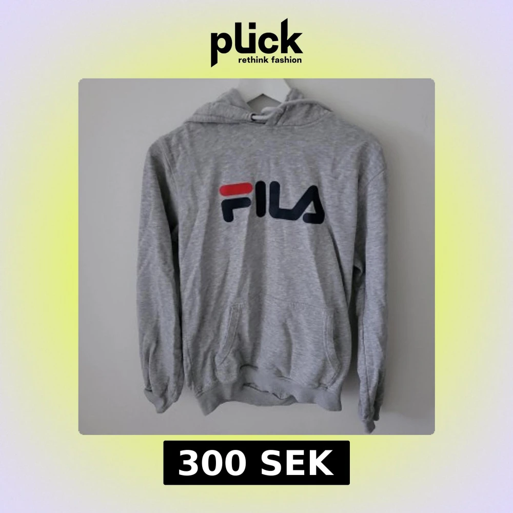 Säljer en klassisk grå hoodie från FILA med stor logga framtill. Perfekt för en avslappnad stil. OBS! FINNS SVART LITET FÄRGSTÄNK PÅ ARMEN.