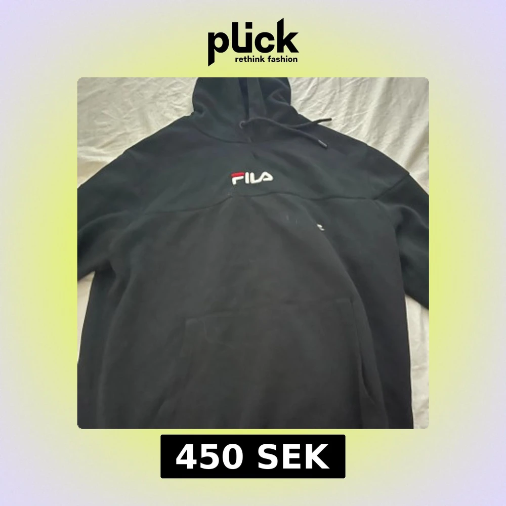 Svart hoodie från FILA med broderad logga i vitt och rött på bröstet. Klassisk känguruficka framtill och justerbar huva med snörning. Perfekt för chill dagar eller streetwear-stil.