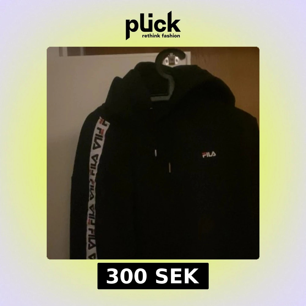 Svart hoodie från FILA med klassisk logga på bröstet och längs ena ärmen. Tröjan har huva med snörning. medium men passar large
