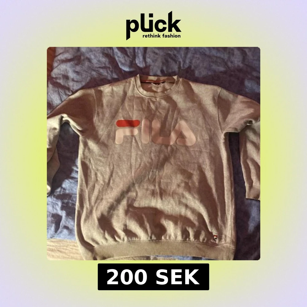 Säljer en grå sweatshirt från Fila med stort logotryck på bröstet. Tröjan har långa ärmar och ribbade muddar vid ärmslut och nederkant. Perfekt för en avslappnad stil.