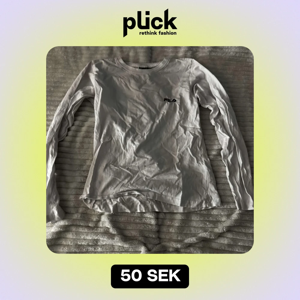 Säljer en vit långärmad tröja från Fila. Perfekt för en avslappnad stil med sin enkla design och bekväma passform. Tröjan har en rund halsringning och Fila-loggan på bröstet. Passar bra till både jeans och mjukisbyxor. ⚠️ni betalar för frakten⚠️
