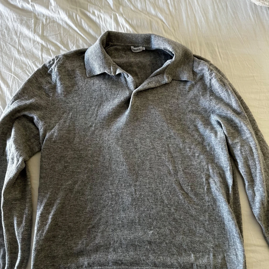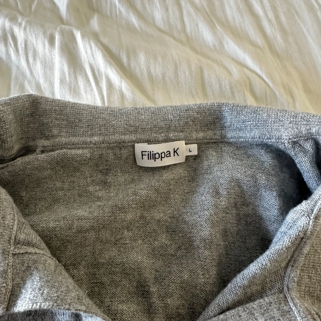 Säljer en stilren grå pikétröja från Filippa K i storlek L. Tröjan har klassisk krage och långa ärmar, perfekt för lager-på-lager. Mjuk och skön känsla, passar dig som gillar minimalistisk och clean stil.