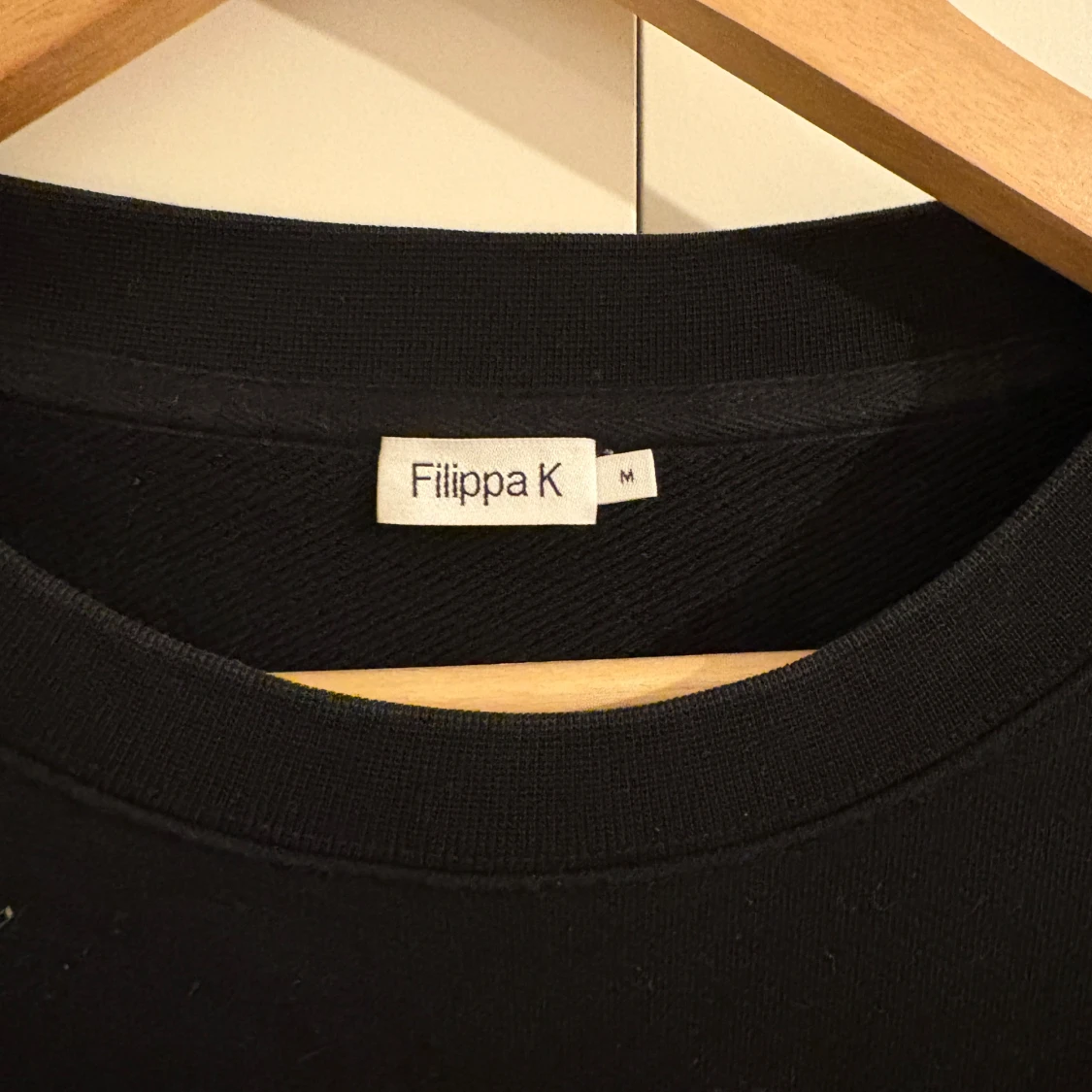 Klassisk svart sweatshirt från Filippa K i storlek M. Tröjan har rund halsringning och långa ärmar, tillverkad i mjuk bomull som är skön mot huden. Perfekt för dig som gillar stilrena och enkla plagg med modern vibe.