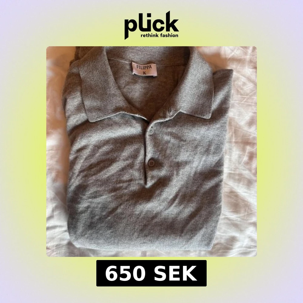 Säljer en stilren grå polotröja från Filippa K i mjukt ullmaterial. Tröjan har en klassisk krage med knappar framtill. Perfekt för en elegant och avslappnad look.