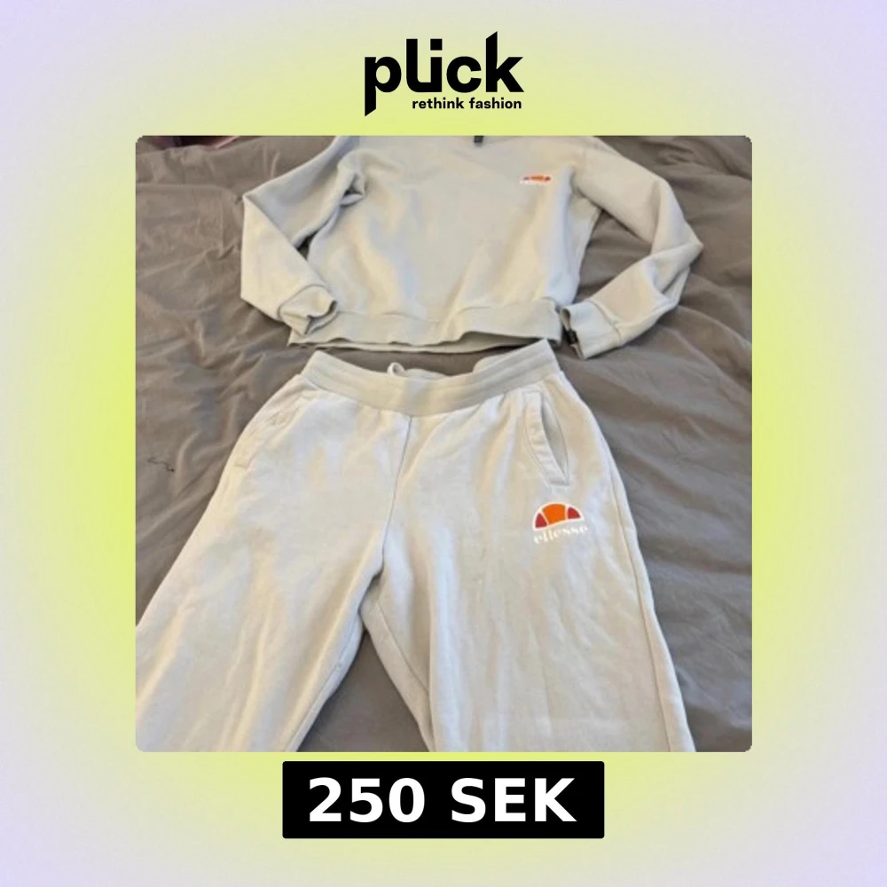 Säljer en stilren grå sweatshirt från Ellesse med deras ikoniska logga i vitt och orange på bröstet. Tröjan har långa ärmar och en rund halsringning. Perfekt för en avslappnad look. Och byxan