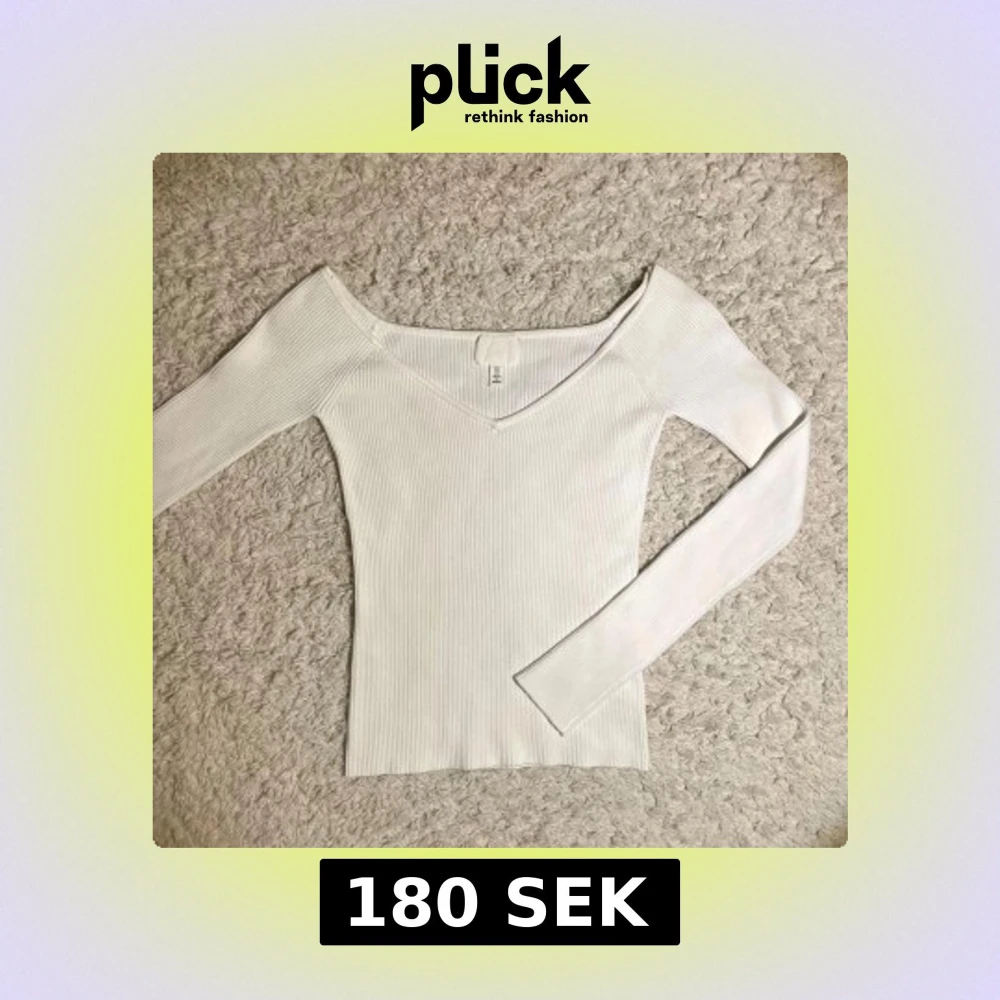 Säljer en stilren vit ribbad topp från H&M med v-ringning och långa ärmar. Perfekt för en elegant och enkel look. Passar bra till både jeans och kjol. 🌟