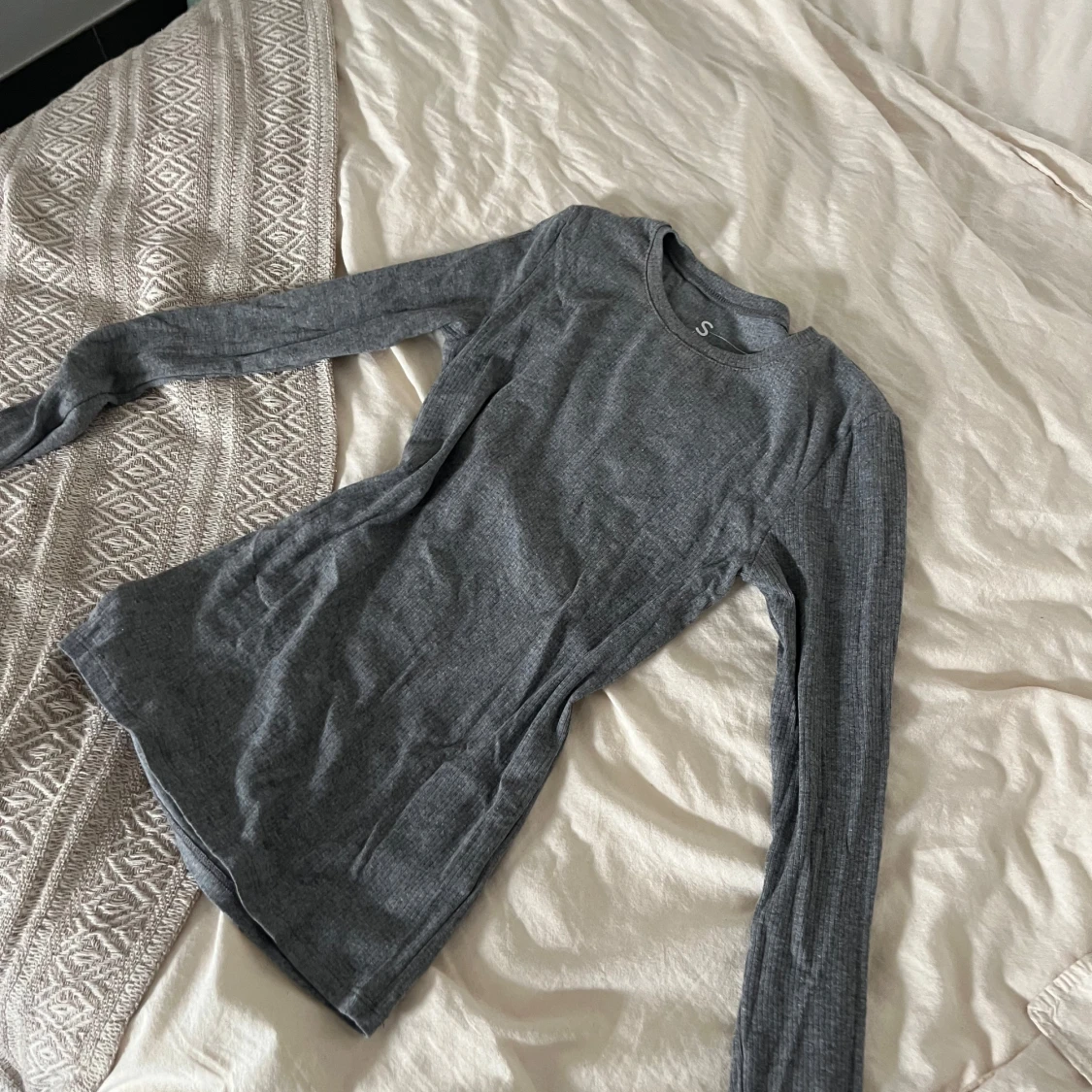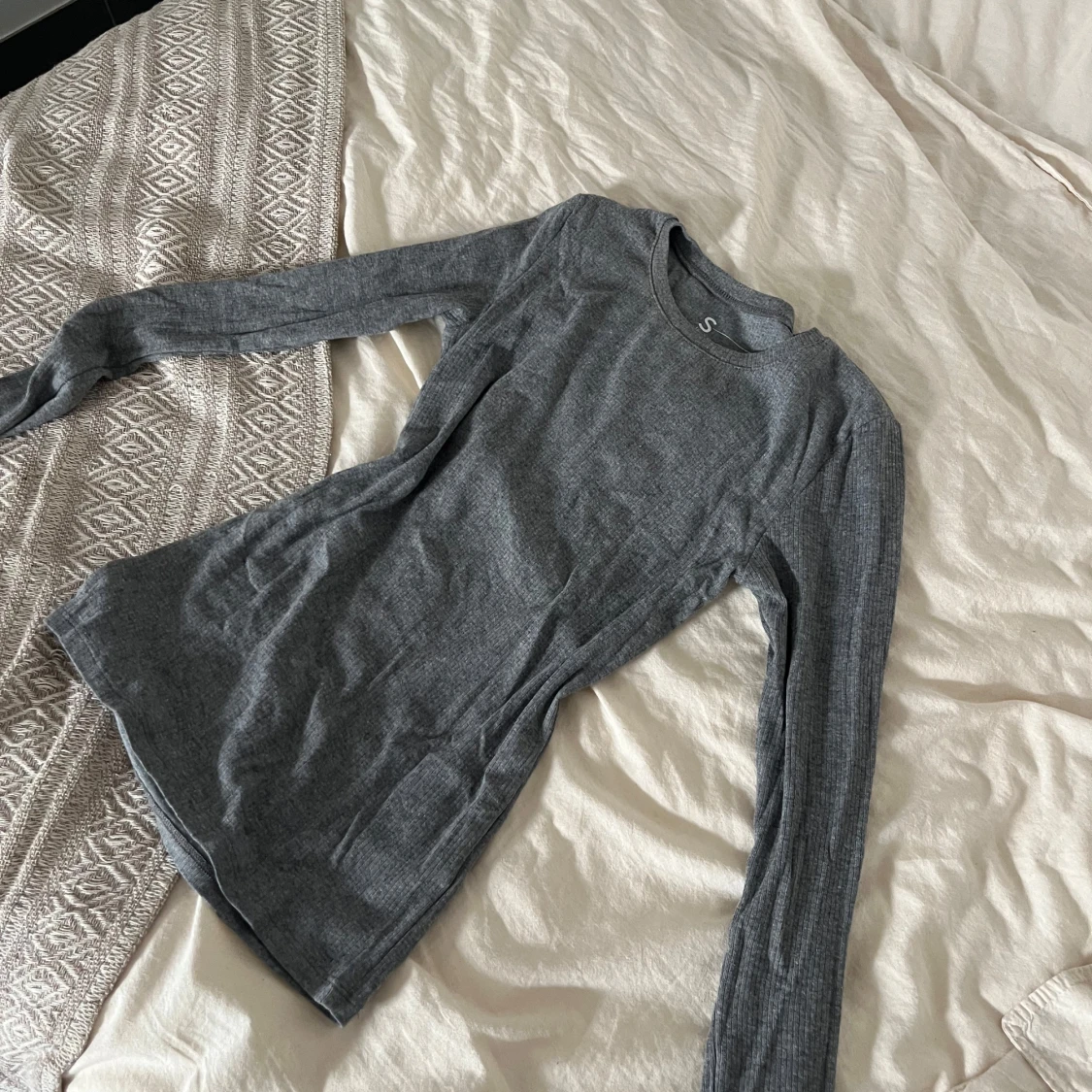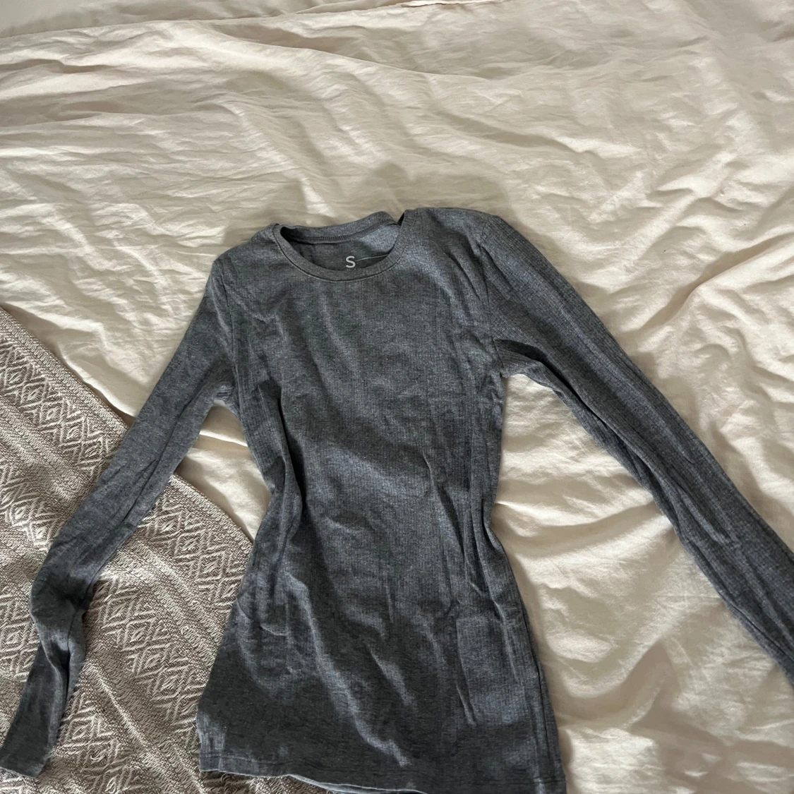 En enkel och stilren grå långärmad tröja i ribbat material. Tröjan har rund halsringning och en slim passform som sitter snyggt på kroppen. Perfekt att bära som basplagg eller under en hoodie. Supermjuk och skön mot huden.