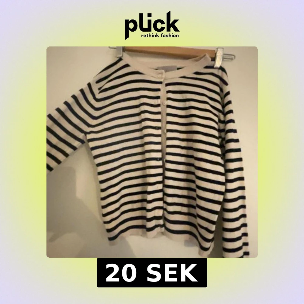 Säljer en snygg randig kofta från H&M i storlek S. Den är vit med svarta horisontella ränder, har långa ärmar och knappar framtill. Materialet är mjuk bomull som känns skönt mot huden. Perfekt för dig som gillar klassisk stil med en twist.