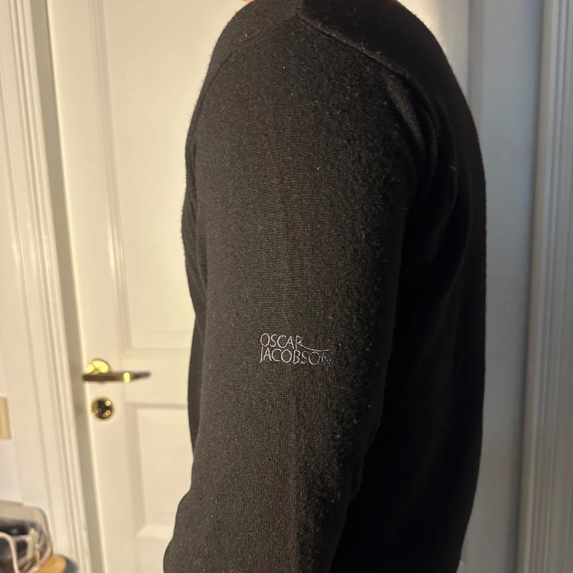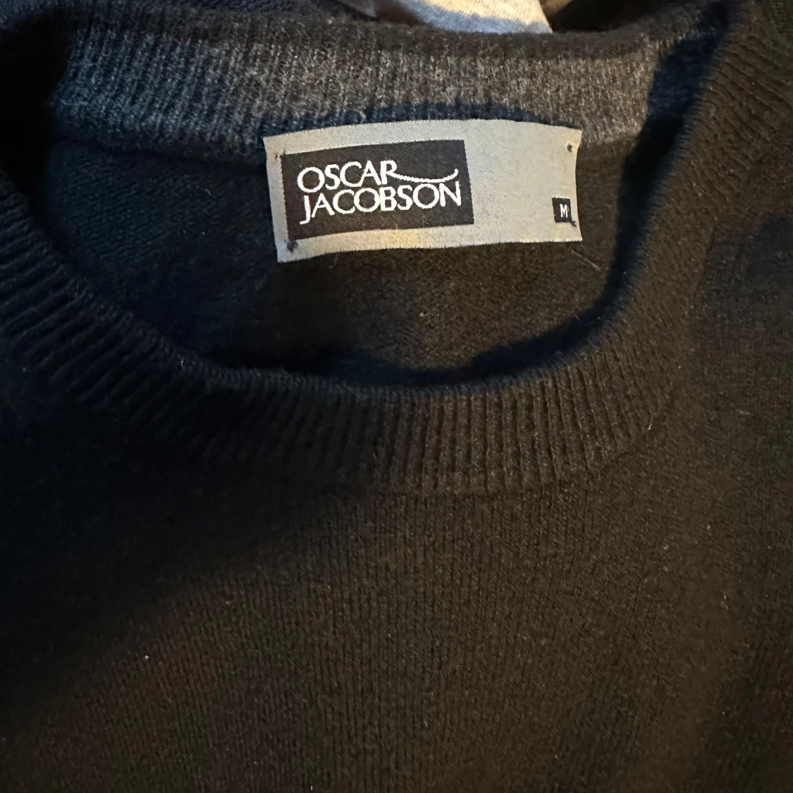 En Stilren Svart Kashmir tröja från Oscar Jacobson i storlek M. Tröjan är långärmad och har en klassisk passform. Tröjan är i utmärkt skick! Modellen är 182 cm och väger 75 kg. Priset är öppen till förhandling!