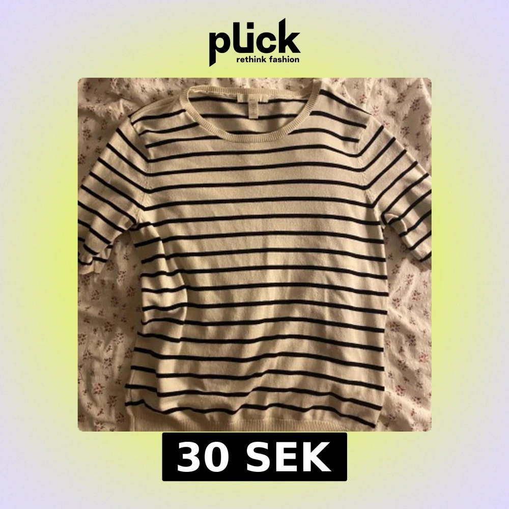 randig, finstickad t-shirt från h&m. har använts men fortfarande i bra skick💓