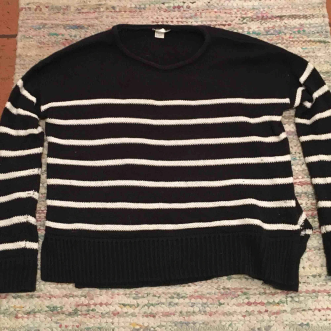 Säljer en stickad tröja i färgen svart och vit. Mycket fin i skick.