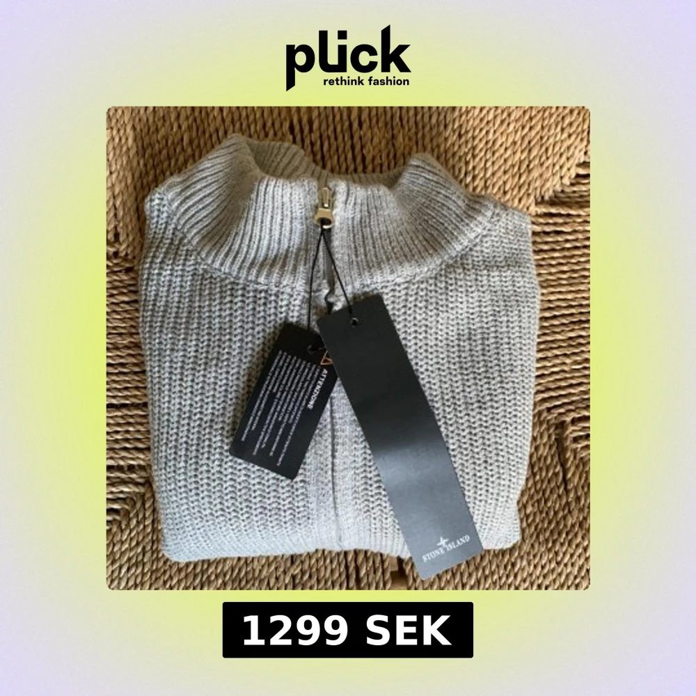 Säljer en grå stickad StoneIsland kofta med half zip och ribbad krage. Tröjan har långärmade ärmar och klassisk StoneIsland patch på vänster arm. Materialet är mjukt och grovstickat, perfekt för kyliga dagar. Snygg, stilren och tidlösa design som lyfter din outfit.