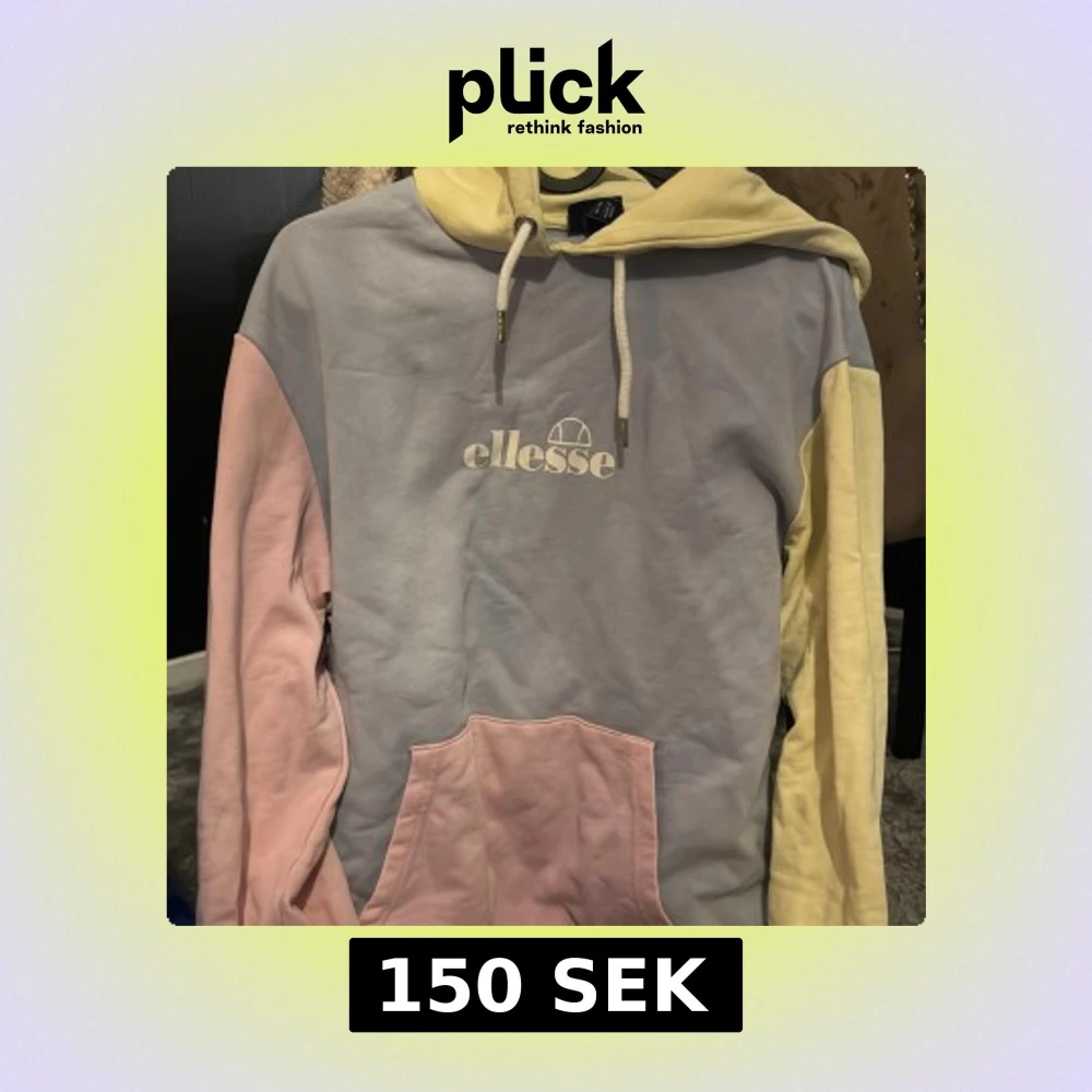 Säljer en cool flerfärgad hoodie från Ellesse med pastellfärger i gult, rosa och grått. Hoodien har en stor ficka framtill och justerbar huva med snören. Perfekt för en avslappnad stil!