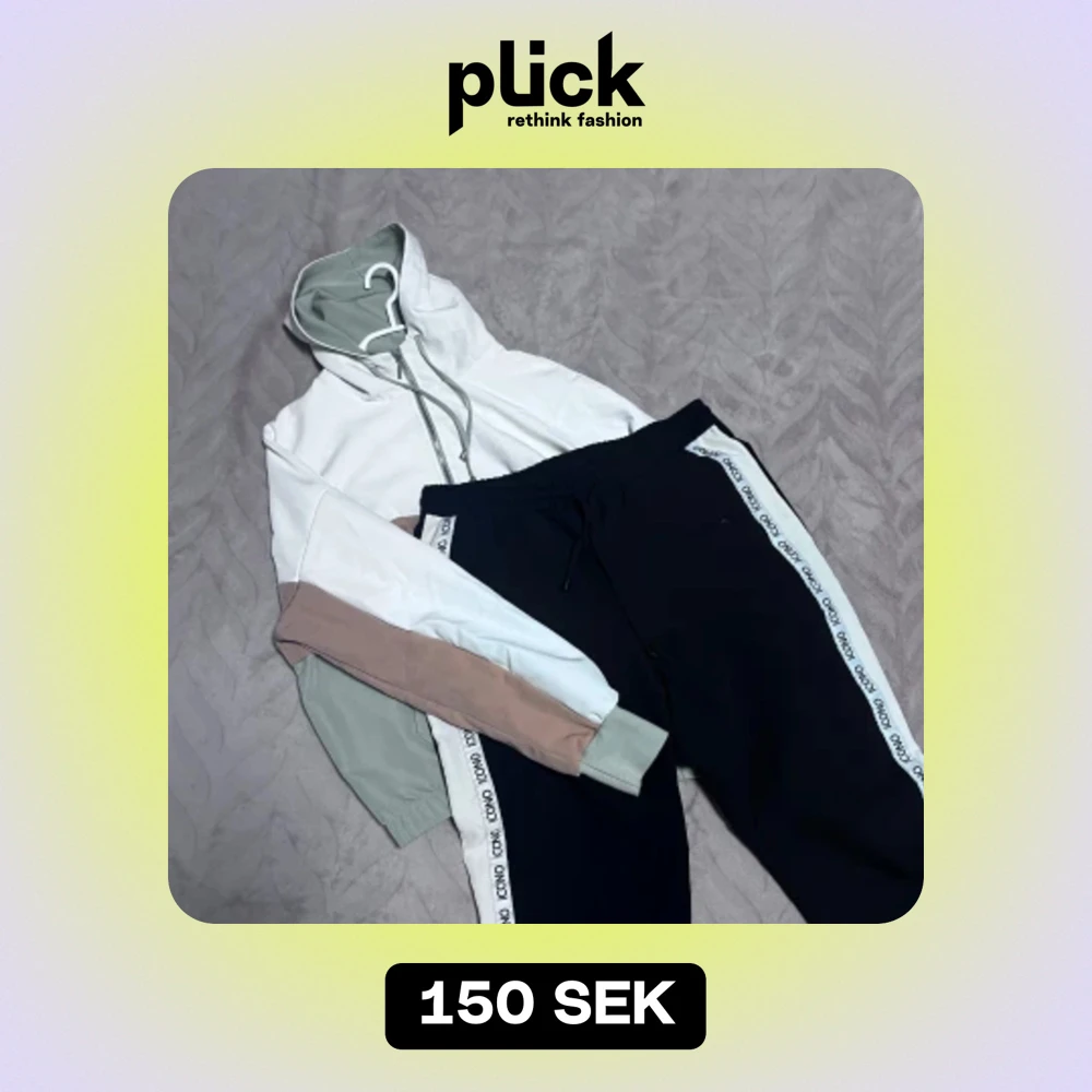En supercool flerfärgad SET från NewYorker. Den har en avslappnad passform med en kombination av vitt, beige och grönt. Hoodien har en stor ficka framtill och justerbar huva med snören.