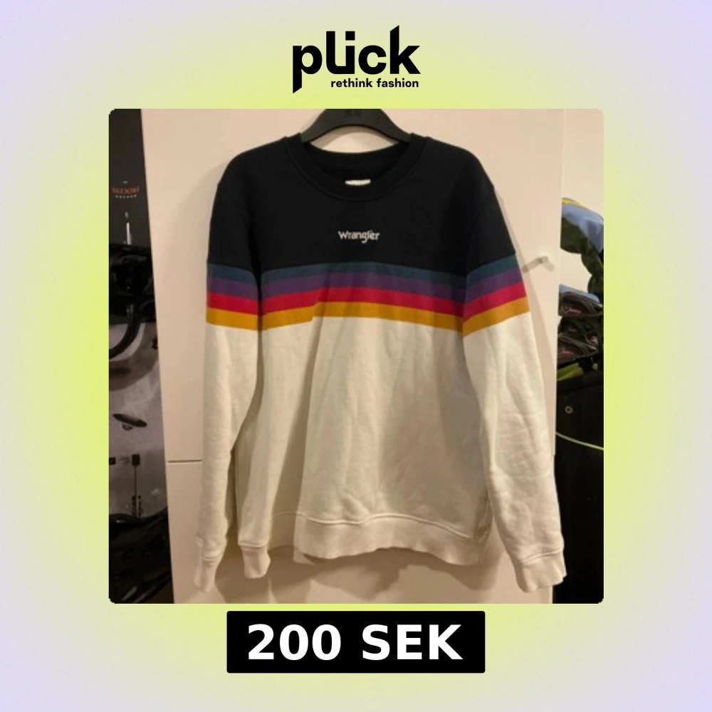 Säljer en snygg flerfärgad tröja från Wrangler. Tröjan har en svart överdel med färgglada ränder i blått, rosa, lila, rött och gult. Den är långärmad och har en bekväm passform. Perfekt för en avslappnad stil! I använd men bra skick. Storlek L. Säljs för 200kr men pris är ej hugget i sten. Hör av er med frågor. Mvh//Alvin
