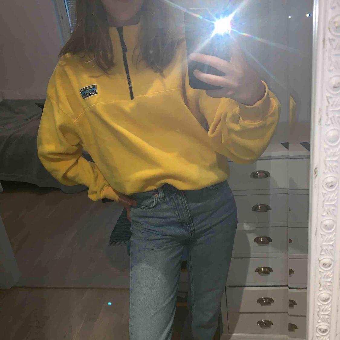 Gul fliströja från junkyard. Storlek XS men är oversized så den passar även S. Mycket bra skick, använd 3-4 gånger. Frakt ingår inte.