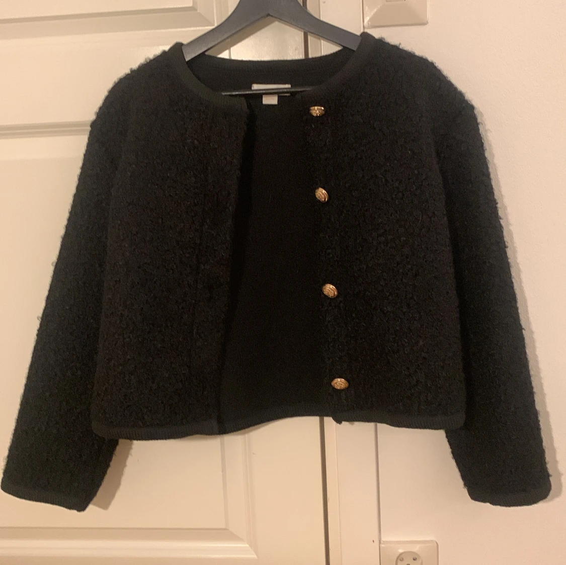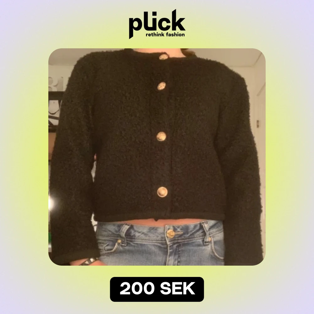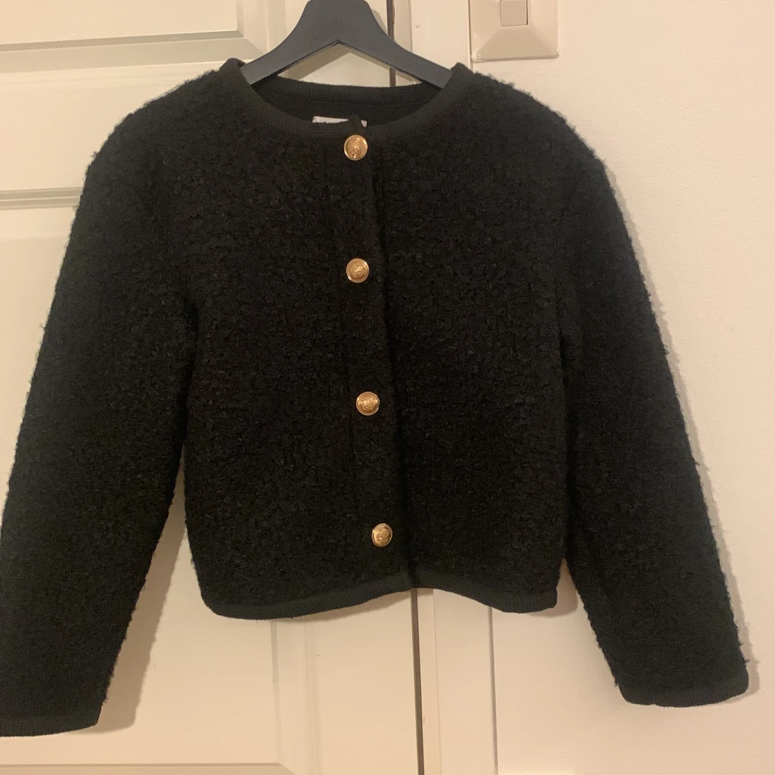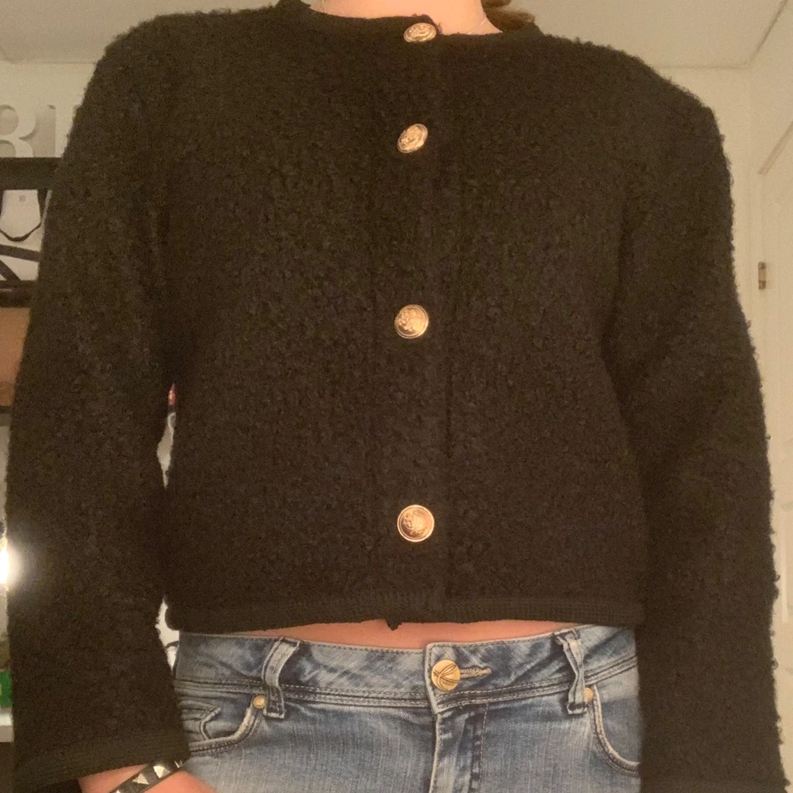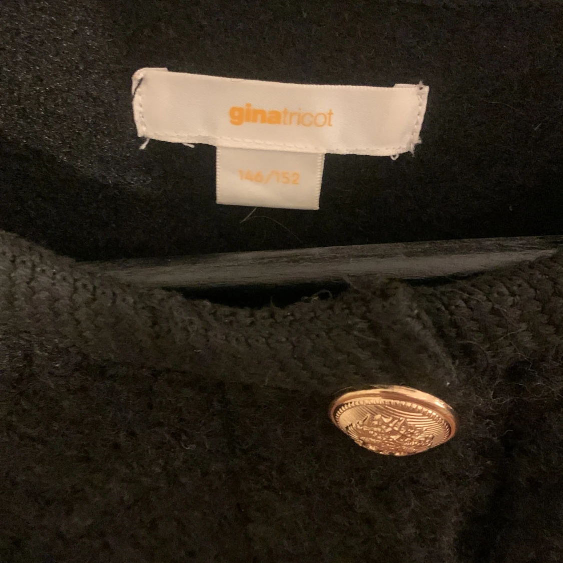 Super fin svart mysig kofta från Gina. Svart med guld knappar och lite fluffig på utsidan. Lite stor i storlek den passar mig bra och jag har igentligen 164. Super bra skick och använd 1-2 gånger💕😊