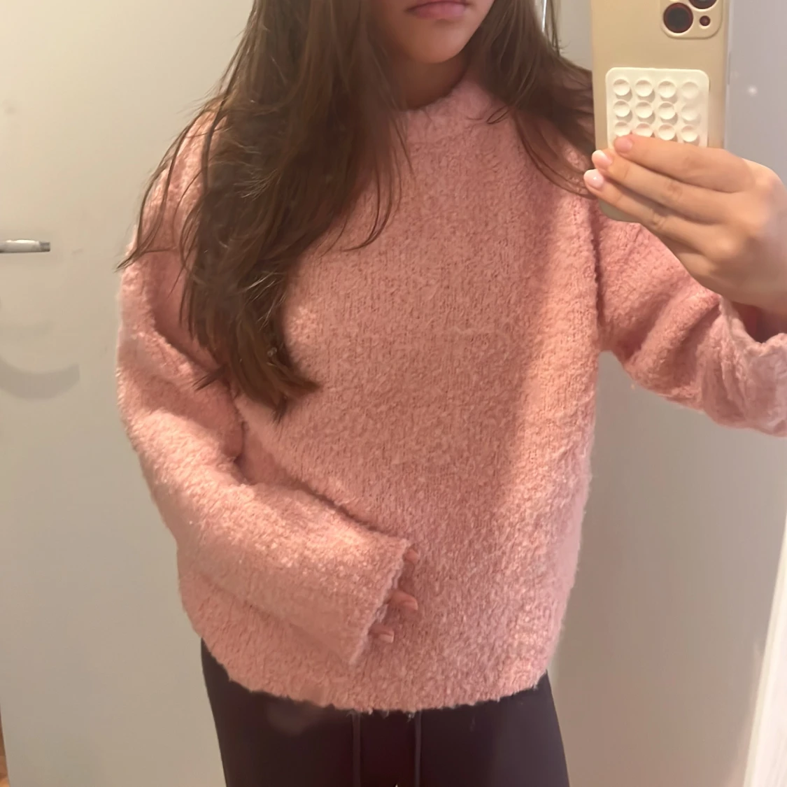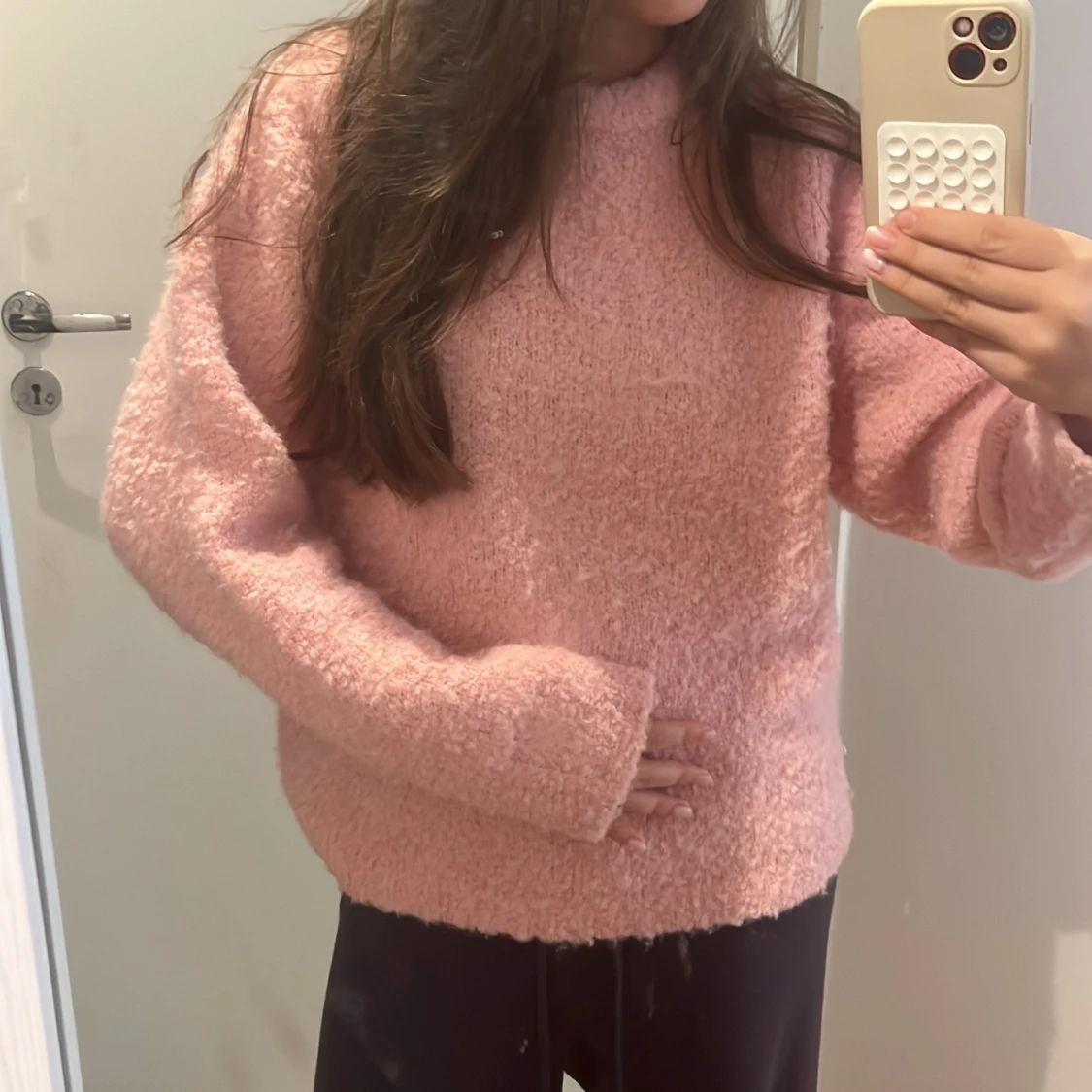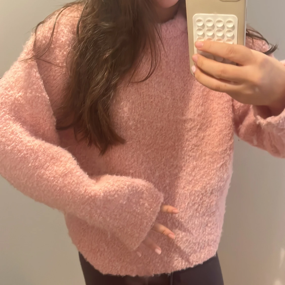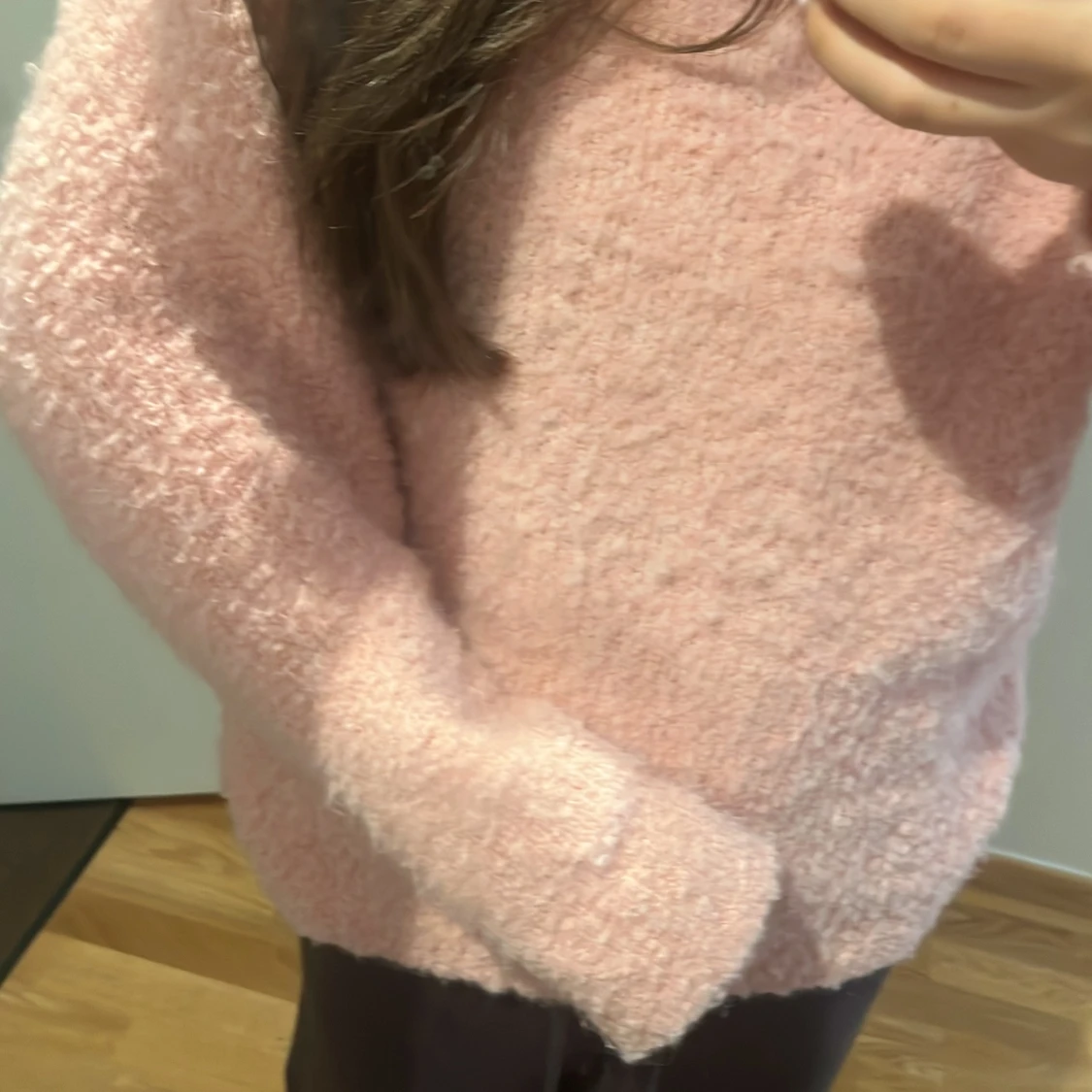 Supermysig fluffig stickad tröja i ljusrosa färg. Tröjan har en loose passform, långa ärmar och är perfekt för kyliga dagar. Den är enkel men ändå riktigt söt och passar perfekt till jeans eller leggings.