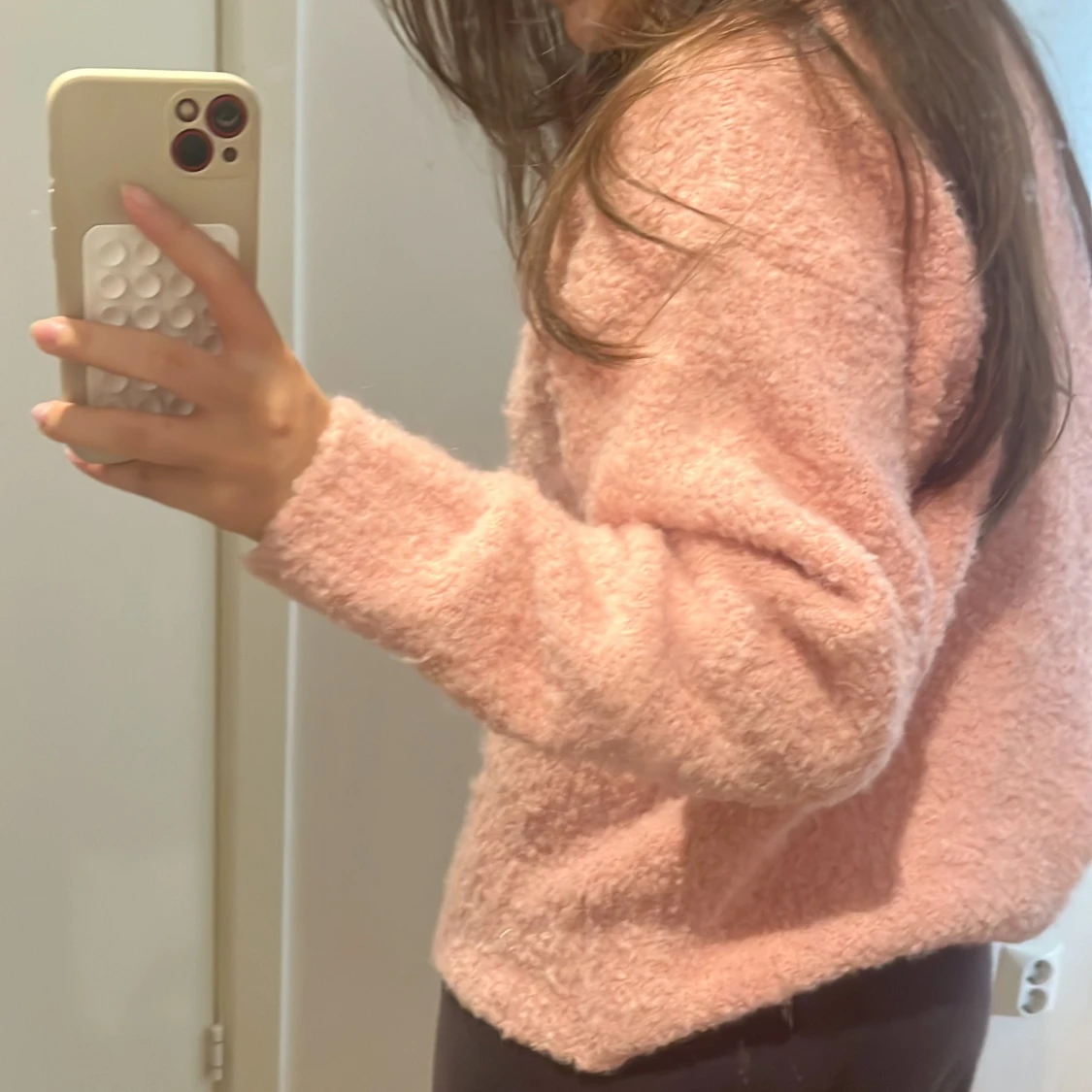 Fluffig rosa stickad tröja