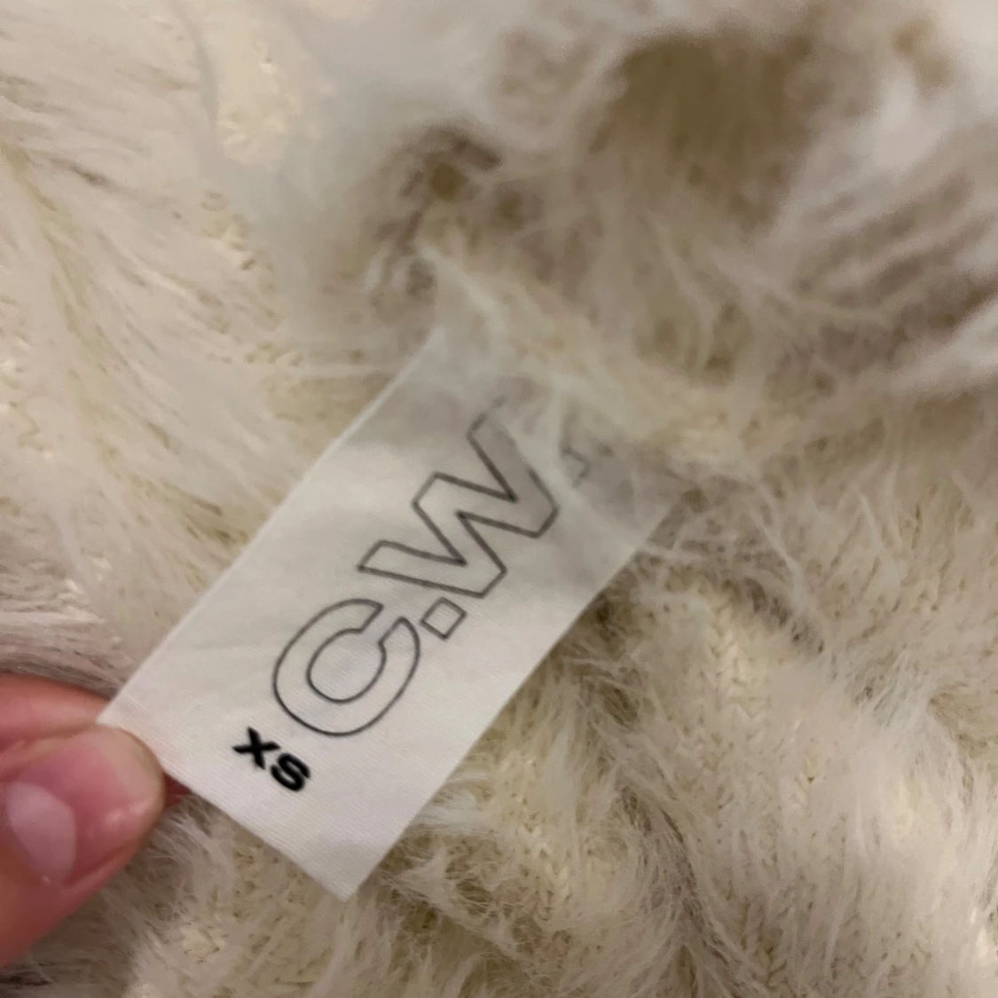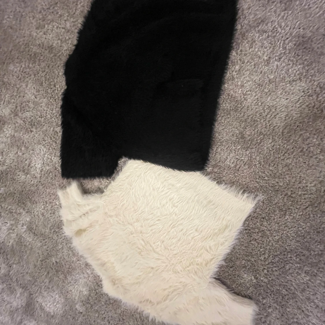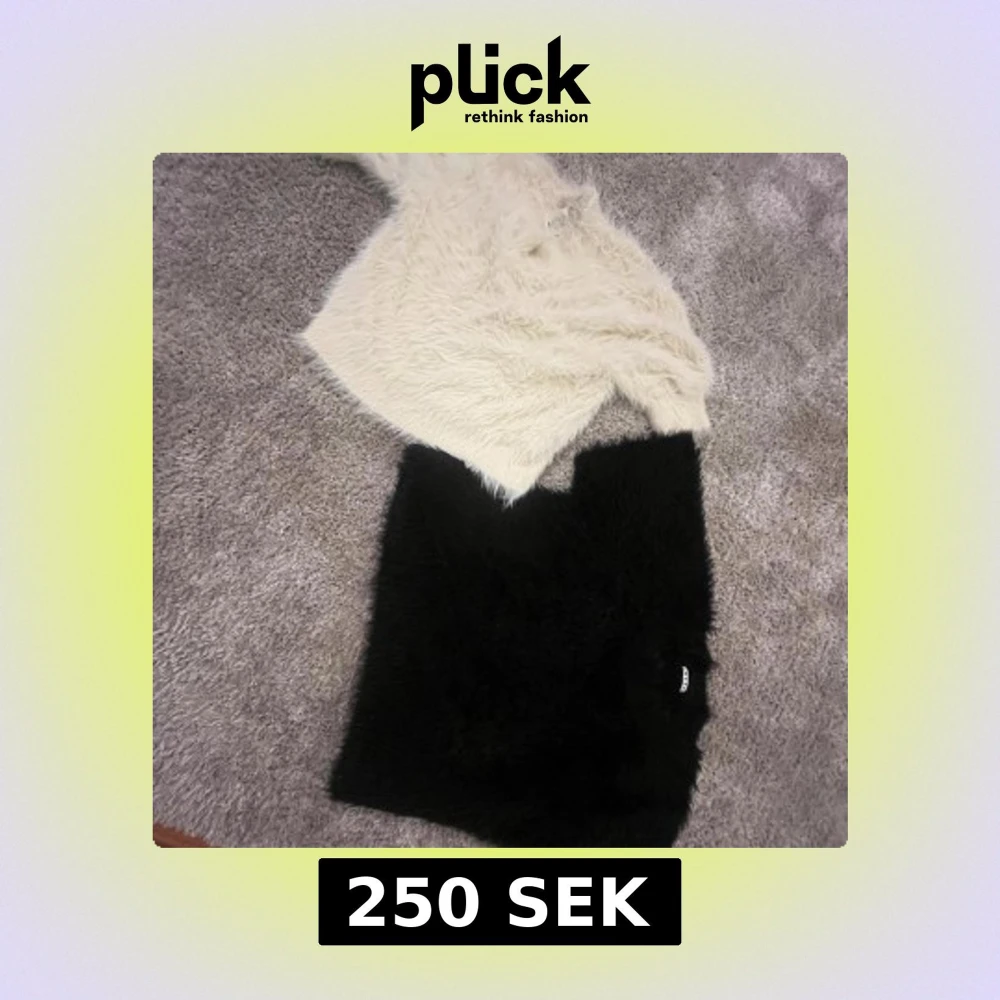 Två fluffiga långärmade tröjor, en vit från C.W. i storlek XS och en svart från Wera i storlek S. Båda är supermjuka och har pälsliknande yta som ger en cool statement-look. Perfekta för kyliga dagar när du vill sticka ut lite extra.