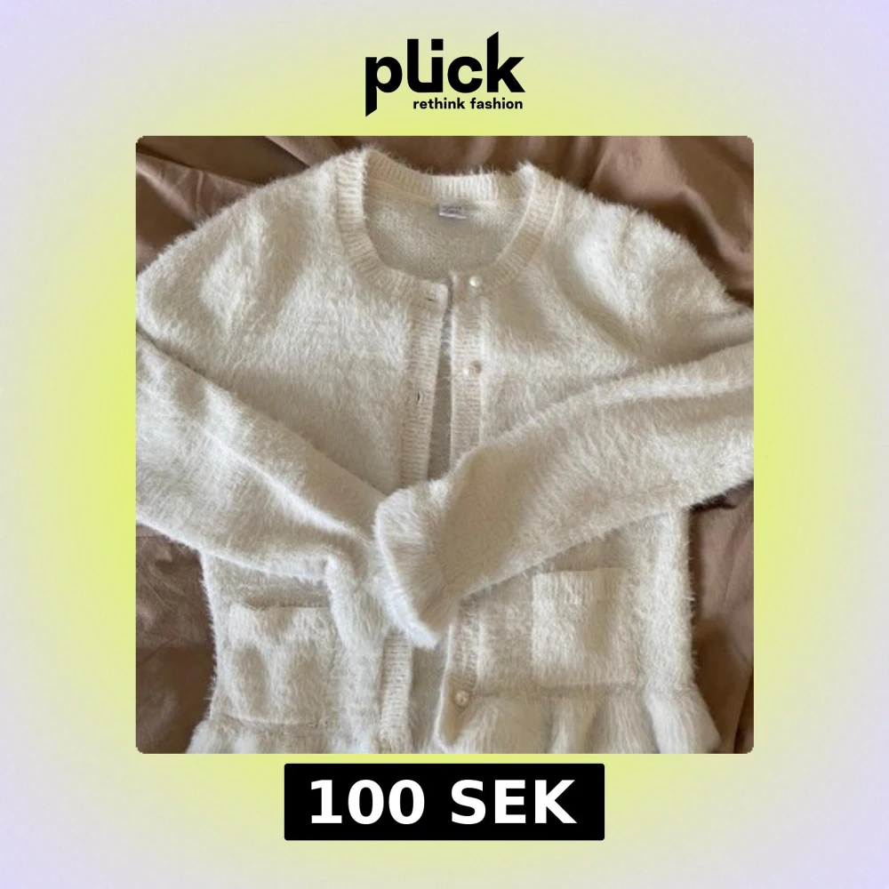 Supermysig vit fluffig kofta med fickor och pĂ€rlknapparđSkriv vid funderingarđ