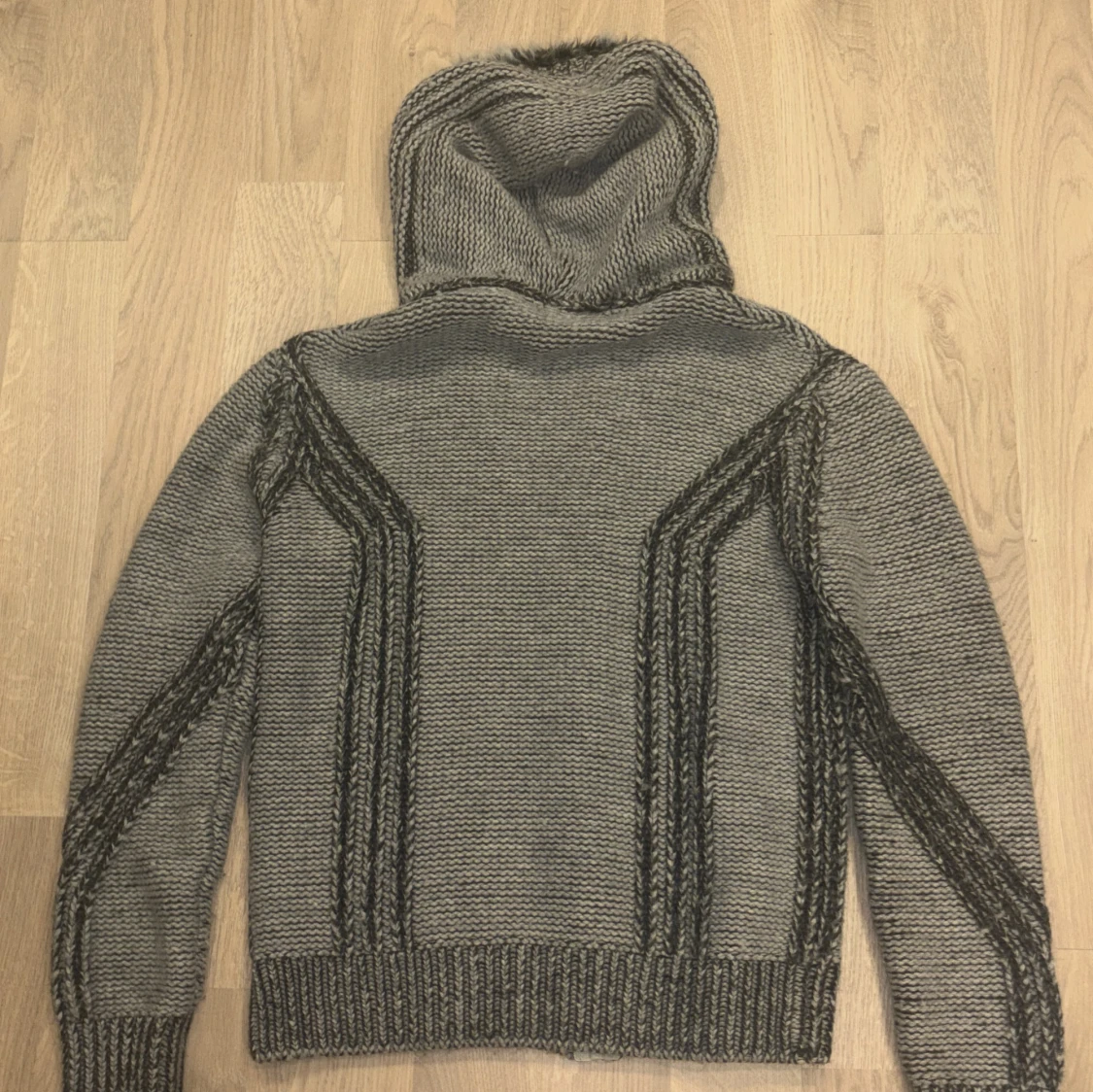 En skit det fodrad cardigan med päls i luvan. Den är varm och skön. Strl L men passar mer M och S. Går inte att köpa ny längre. Den är väldigt sällsynt och svårt att få tag på sådana här tröjor därav priset. Vårat pris endast 999 priset kan alltid diskuteras