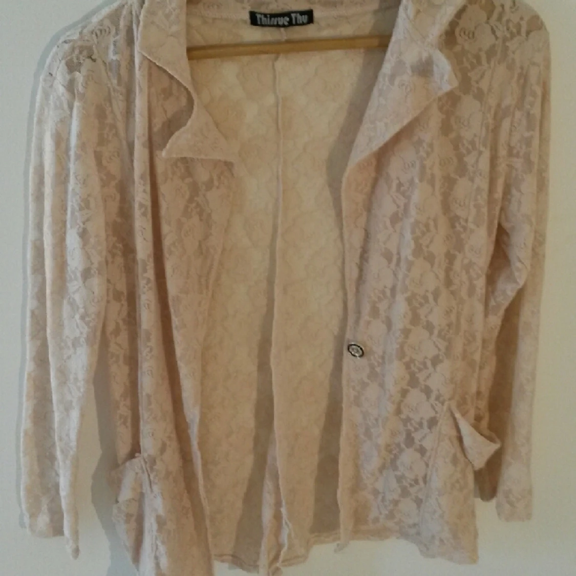 Champagnefärgad spetskavaj från Fokis webbshop fokiwa, jag tror att den är i storlek small men det står inget på lappen.